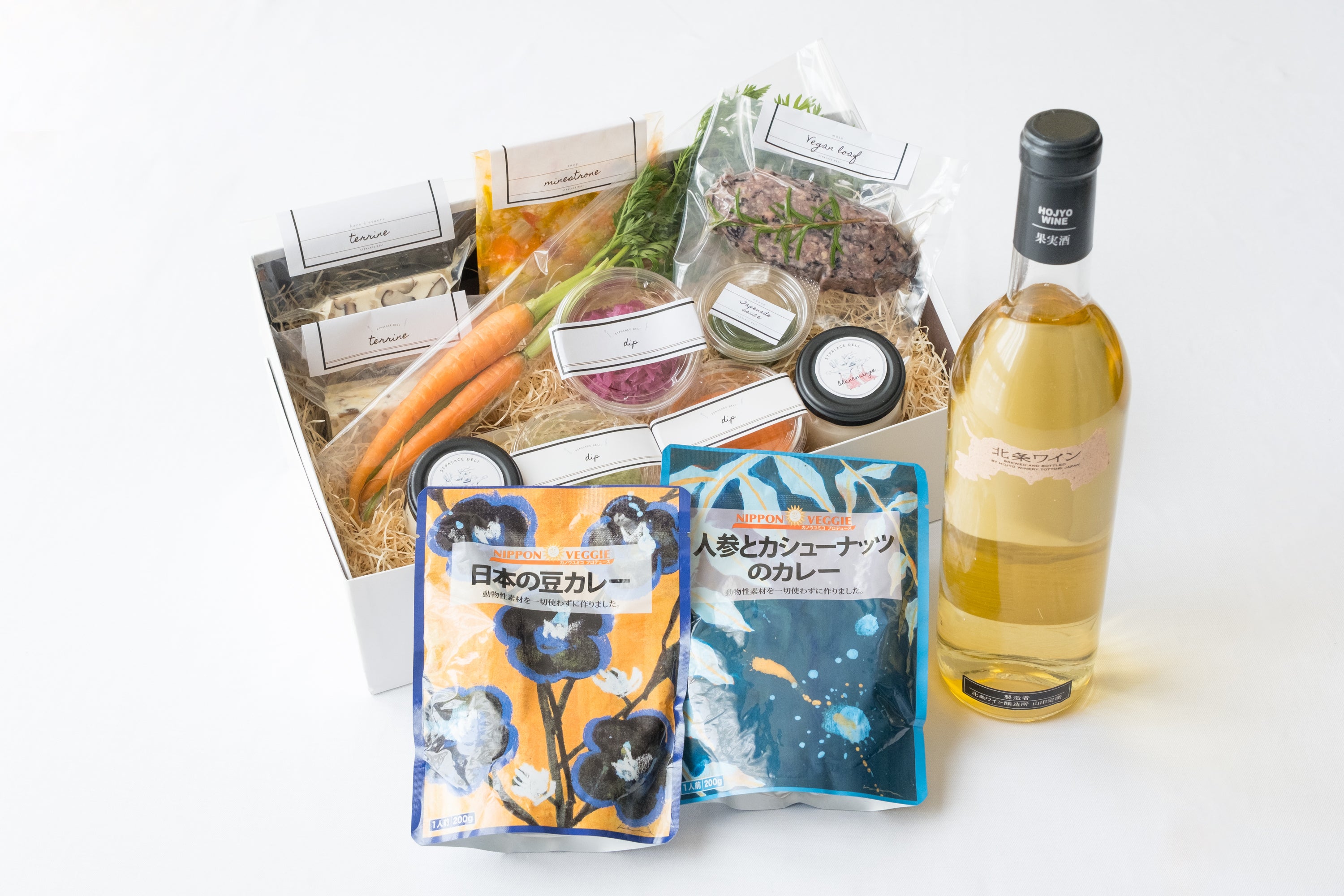 ④【おうちで味わう鳥取野菜のヴィーガンフルコース+カノウユミコ プロデュース ヴィーガンカレー+鳥取のワイン セット \7,800】
