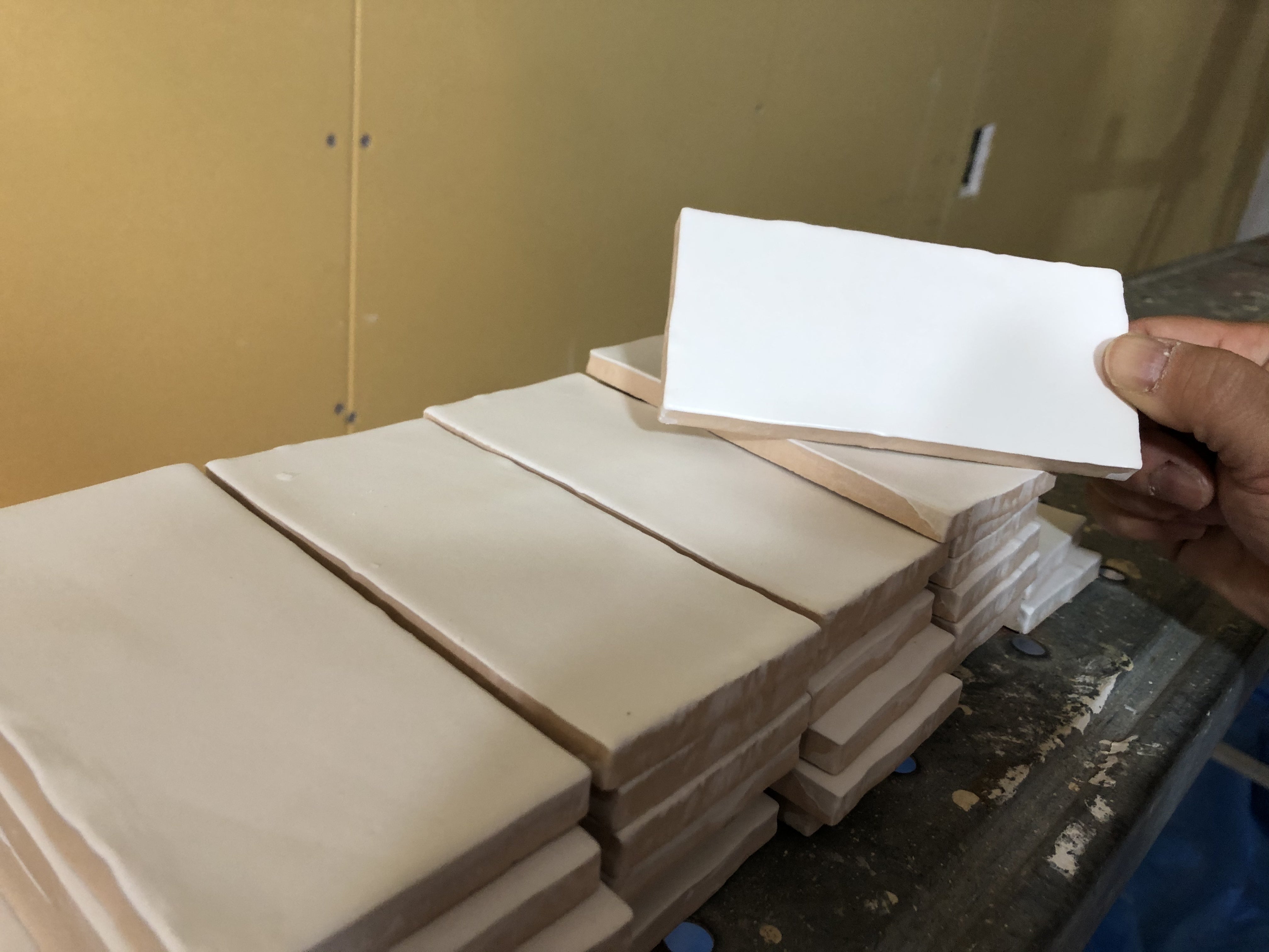 左官屋の親方直々に一枚、一枚貼ってくれています。