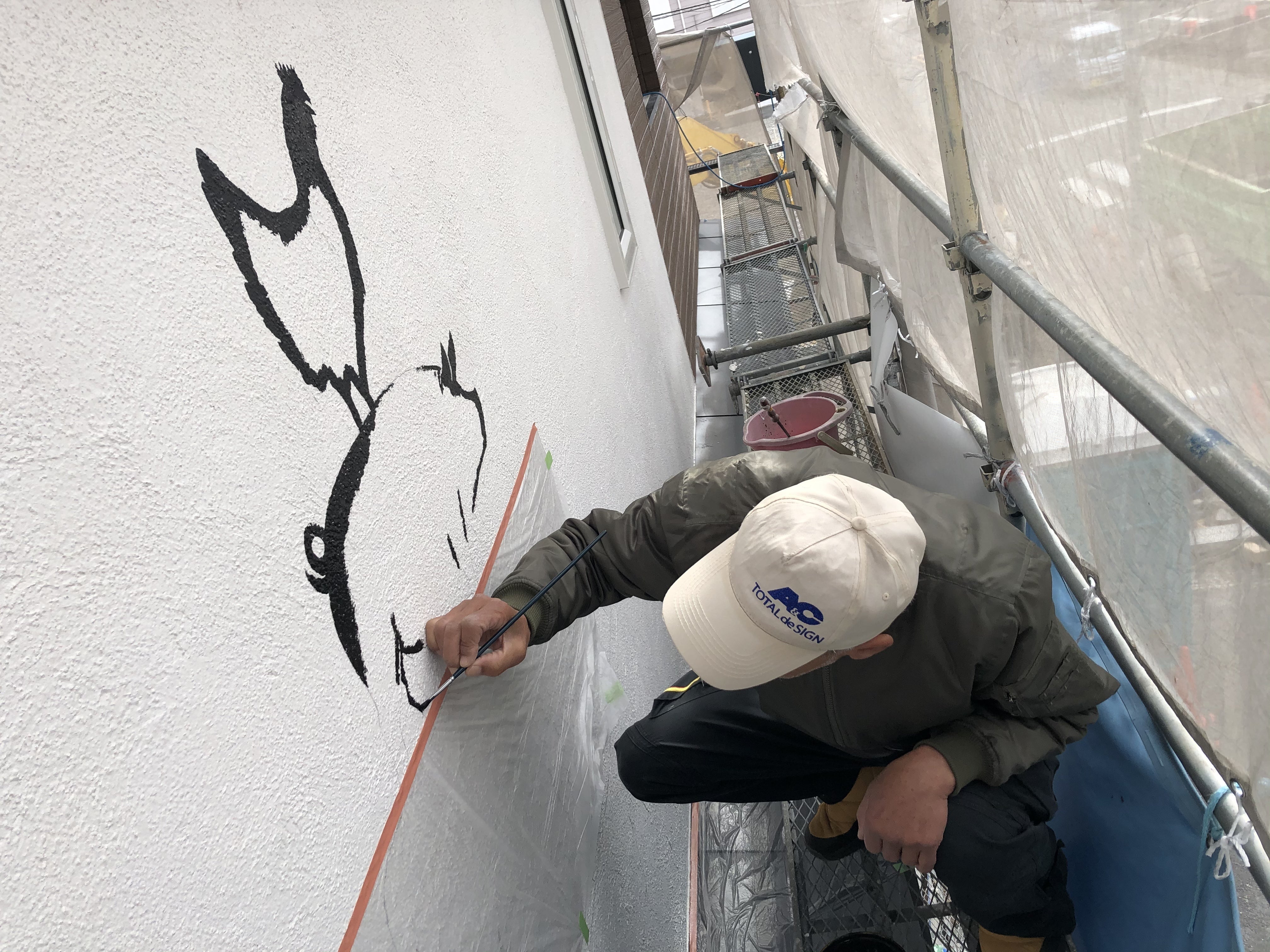 今日は外壁にロゴマークのペンキ塗りをしてきました。