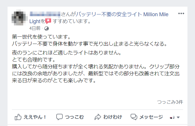 2021/08/31 16:05こんにちは!明日から9月ですね。残暑はありますがだんだんと涼しくなっていきます。ランニングやウォーキングなど外での運動もしやすくなってくるのではないでしょうか。ただ同時に暗い時間帯も長くなるので、安全には気をつけたいですね。Camp-fireでの先行割引販売はあと6時間ほどで終了となります。ただ今出荷準備をすすめていますので、早ければ今週中に発送できます。https://camp-fire.jp/projects/view/357964Makuake, Campfireで既にご購入下さった皆様、もうしばらくお待ち下さいませ。何かご不明点等ございましたらお気軽にご連絡下さい。 もっと見る