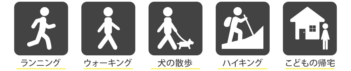ランニング、ウォーキング、犬の散歩、ハイキング、子どもの帰宅時など、様々な場面で活躍します。そのほかにも使い方によっては思わぬ場面で活躍することもあるかもしれません。