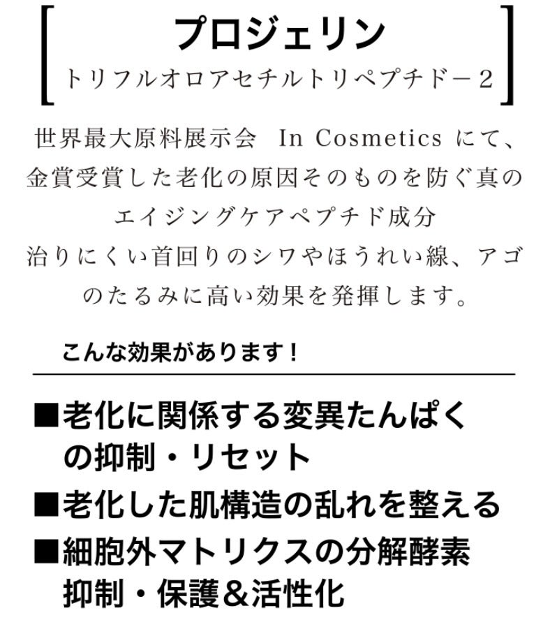 国際原料展で金賞受賞成分「プロジェリン」「クロノライン」高濃度配合!