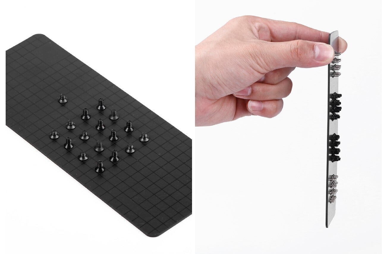 マス目がデザインされたシートになっており、ネジの管理が容易です。