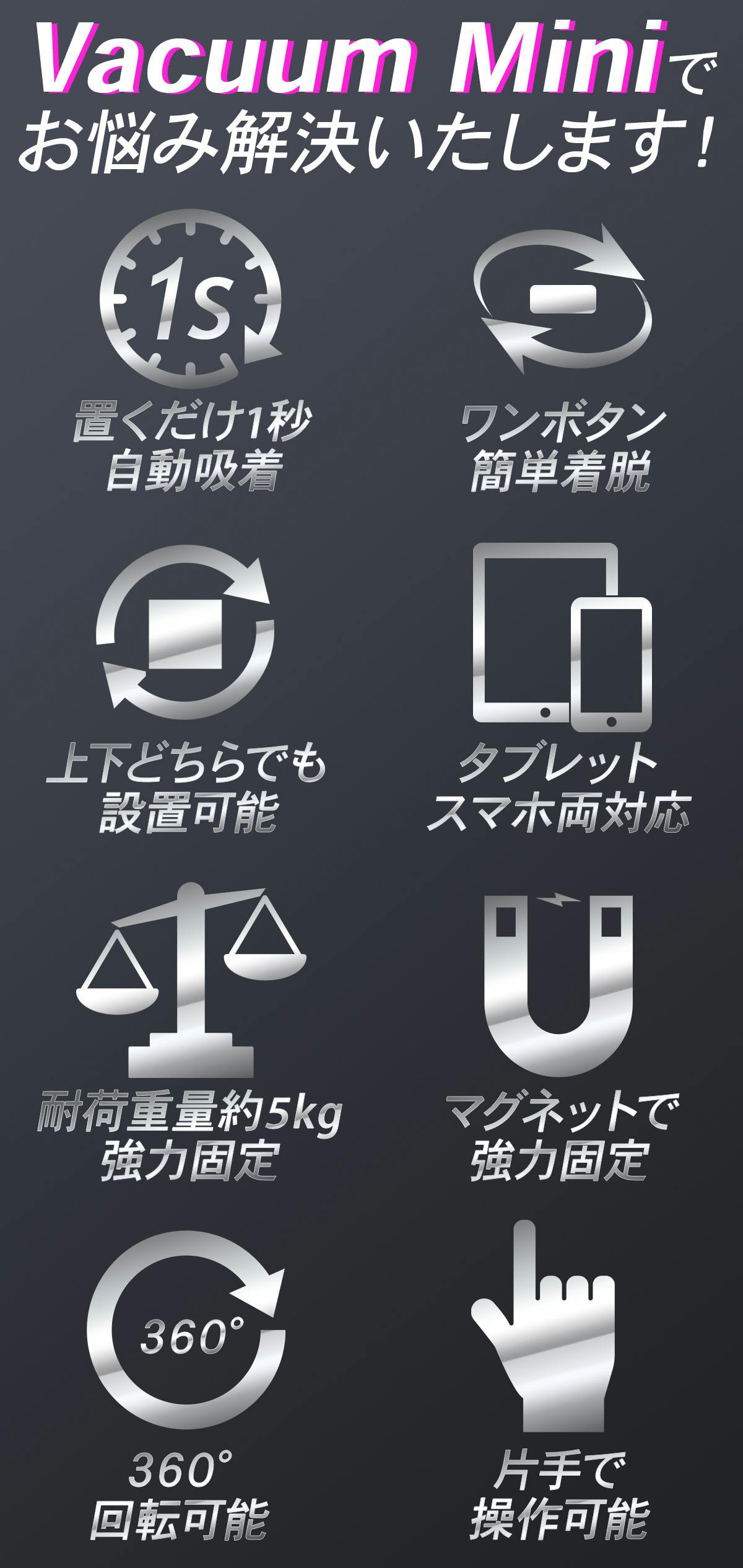 1秒でガッシリ自動固定!ワイヤレス充電対応の真空吸着式スマホホルダー