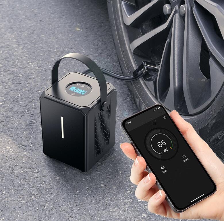 ノイズ軽減技術を採用、動作中の音は約65dbです。一般のエアコンプレッサーの動作音はほとんど70db以上です。