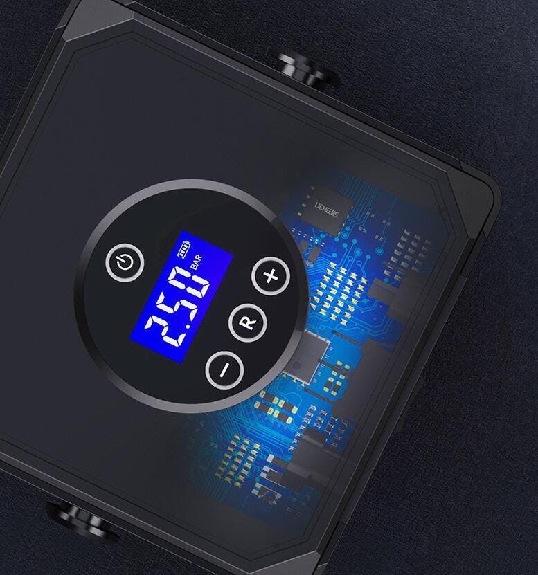 LCDデジタル空気圧メーターが装備されて、液晶画面で空気圧単位、バッテリー残量、指定空気圧の値をはっきり反映できます,夜間でも数字が見やすく,安全に空気入れが可能です。