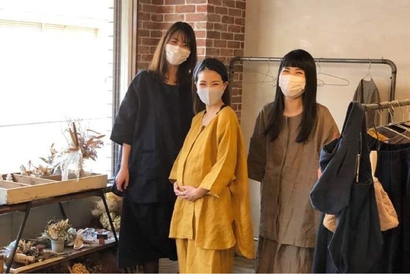 じつは3人とも同じサイズのhahagiを着ているんです!