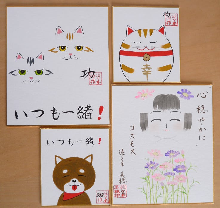 昨年の第1弾に続けての支援者が8名いらっしゃいます。前回が40名ほどでしたので割合は高いのであろうと受けとめています。この状況を功工人と美穂作家に伝え何かお礼できるものをと話をして制作してくれたのが色紙です。リターン品には予定していなかったのですが追加することにしました。こけし工人は立体曲面にいつも描いているので平面の色紙に絵を描くのは勝手がちがうため特別な時でなければ色紙を描くことはないそうです。