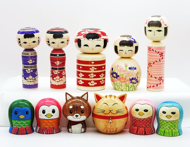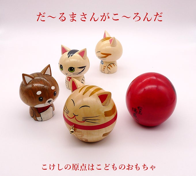 活動報告も5回目になりました。先週に続けて佐々木こけし工房の新型こけしの魅力を紹介したいと思います。今回は縁起物とキャラクターの「かわいいこけしちゃん」です。はじめに ・・・ここは飛ばして読んでもらっても結構です。伝統こけし工人の方々のInstagramには創作したこけしがたくさん出てきます。また、こけしファンの方のInstagramに投稿されている作品も伝統より創作したこけしが多く見られます。新型と呼んでもいいのではと思いますが、分業ではなく大量につくるものでもないので、創作と呼ぶのがふさわしいようです。伝統に縛られず新しく自由に作られたこけしに共通するのは「かわいい」です。今や「KAWAII」は世界共通語ですから、こけしの世界にかわいいが広がるのは自然な流れでしょう。明治時代に「こげす」とか「きぼこ」などと呼ばれていた頃のこけしは民芸品としての子供の遊び道具でした。昭和になってから「こけし」と呼び名が統一されて、さらに「伝統」の呼び名が付け加えられたのは戦後のことで、まだ100年すら経っていません。日本の伝統文化の中ではまだまだ新しいと考えた方が良さそうです。温泉のお土産に買われていって、リビングに飾られたり、おばあちゃんの部屋にそっと置いてあったり、蒐集部屋に集められたりと、工芸品としての扱いへと変わっていきました。個人的には伝統とかそうでない方と区別する言い方はしっくりしないと感じるようになってきました。みんながみんな「かわいいこけし」でいいんんじゃないのかと思っています。さらに言わせてもらえれば、コンテストで内閣総理大臣賞はじめ肩書を付けた賞をもらおうとして競争する時代はそろそろ終わりにしても良いのではと思っています。腕を競い磨くために伝統こけしの技を継承していくことも大事ではありますが、原点に戻るための活動に寄り添う方が世界共通の「KAWAII」にも相応しいと思っています。マーケテイングの手法もたくさん出てきています。これまでのように閉ざされた部屋で賞を決めるより、オープンにして多くの方から票やコメントを貰うほうが工人にとっても分かり易くて、今後の制作に意欲が湧くと思うのですが、皆さんはいかがお考えになるでしょうか?前書きが長くなってしまいました。佐々木こけし工房にある300点近い作品のなかからセレクションしたかわいい作品を見ていきます。1.まんまる猫原型のだるまさんは松島の瑞巌寺の達磨です。瑞巌寺は伊達政宗の菩提寺としても有名です。この写真のだるまさんは功工人がロクロ加工して奥様の美穂作家が描彩しています。色づかいと筆の流れがみごとですが、ここになるまでには瑞巌寺から厳しいダメ出しを何度もいただいたとか。瑞巌寺のオンラインショップにはないので足を運ぶ以外に手にいれることはできない一品です。そのだるまさんの形をかわいいこけしにしたのが「まんまる猫」です。モチーフは佐々木こけし工房に同居している「こたろう」です。食べるのが好きでふとっちゃっておデブさんなのです。首にある鈴はこたろうと同じですよ。耳は佐々木こけし工房に継承されている「福耳」です。だるまさん似の笑ったお顔も素敵ですね。功工人の愛情表現ぶりがわかるKAWAII一品です。2.まめ柴「ともかく可愛らしい犬のこけしを作りたくなって、まめ柴の愛らしさを表現に込めました」と功工人が言っていることからもわかりますように、工人がたのしそうに作っている様子が想像されるほほえましい作品に仕上がっています。弥治郎こけし村のみやげ店に猫ちゃん達と一緒に並べられているいまとっても人気のあるこけしです。「まめ柴」はサクラの木目模様が綺麗に光っています。猫ちゃん達はミズキの白さが光っています。いずれにしてもそのかわいらしさにおもわず笑ちゃいます。こけしには足もきちんと描かれていて、さらには、背中側にまでしっぽが描かれることは珍しいことのように思えます。なぜなら手間暇がかかりますし、手に取らないと気づかれないところですから。なので、工人のその心意気が素敵であることを知っていただきたいのです。つぶらな目に見つめられて、思わずぎゅっとしたくなるKAWAII一品です。お知らせもっと紹介していきたいところですが、ここからお知らせをさせていただきます。来る1月22日から23日にかけて、「ミアウペッケ」誕生のこけし展を開催します。場所は「にゃんこけし」誕生の地である宮城県大河原町のうわにわあとりえです。2年かけて創作してきたミアウペッケが誕生するまでの物語を見ていただきたいと思い開催します。初作品から前回のクラウドファンディングのリターン品やオープン準備中のOnlineShopで発売予定の作品まで約30体を一堂に揃えます。虎こけしの「若」と「匠」も持って行きます。コロナ感染がまた活発になってきていますので、感染予防に気をつけながら静かに開催したいと思います。販売品は置きませんが、来て戴いた方