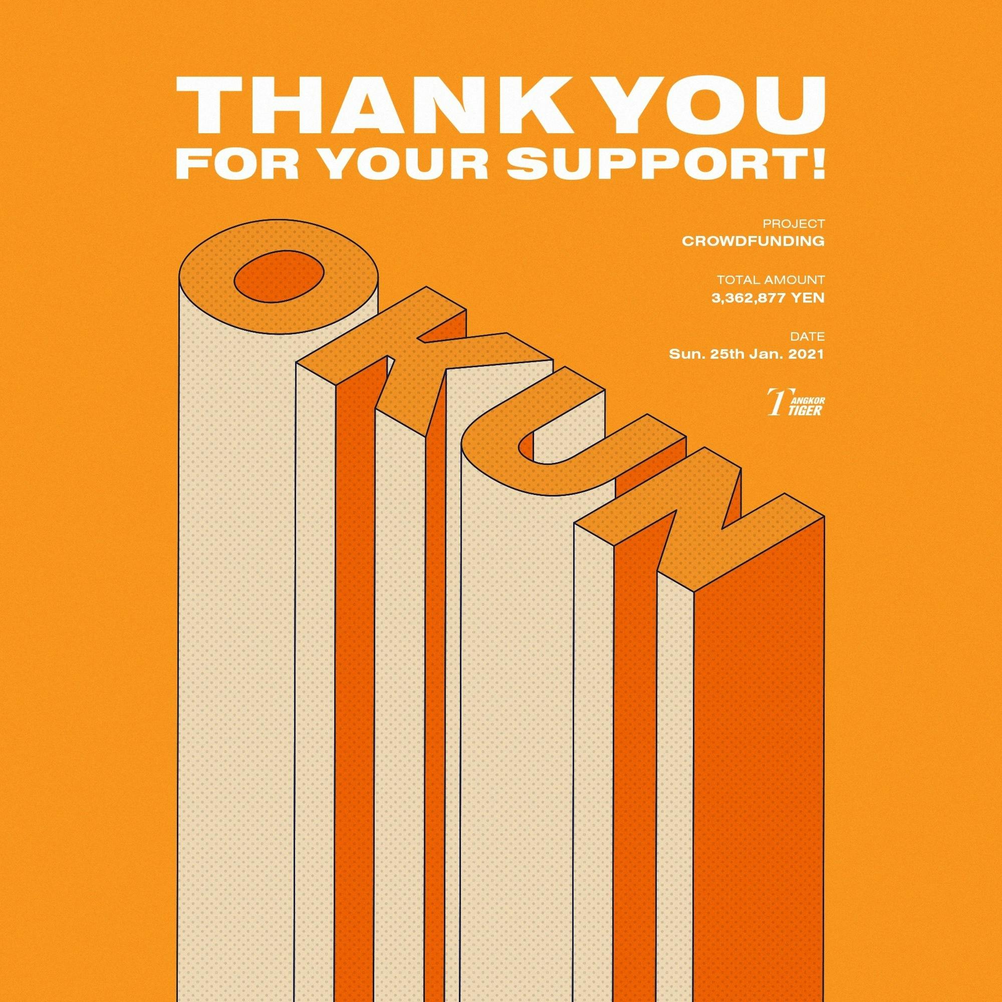 2021/01/26 11:452021年1月25日(月)にクラウドファンディングが終了致しました。支援者数 155名総支援額 3,362,877円目標金額を大幅に超えることができ、本当に嬉しく思います。2021シーズンは3月6日開幕予定です。スタジアムへの収容人数は引き続き全収容数の10%と厳しい対応を強いられますが、チーム一丸となってシェムリアップのために活動していきたいと思います。各種リターンに関しましては、順次対応させていただきますので、よろしくお願い致します。改めまして、今回アンコールタイガーFCのクラウドファンディングにご協力いただきまして、本当にありがとうございました! もっと見る