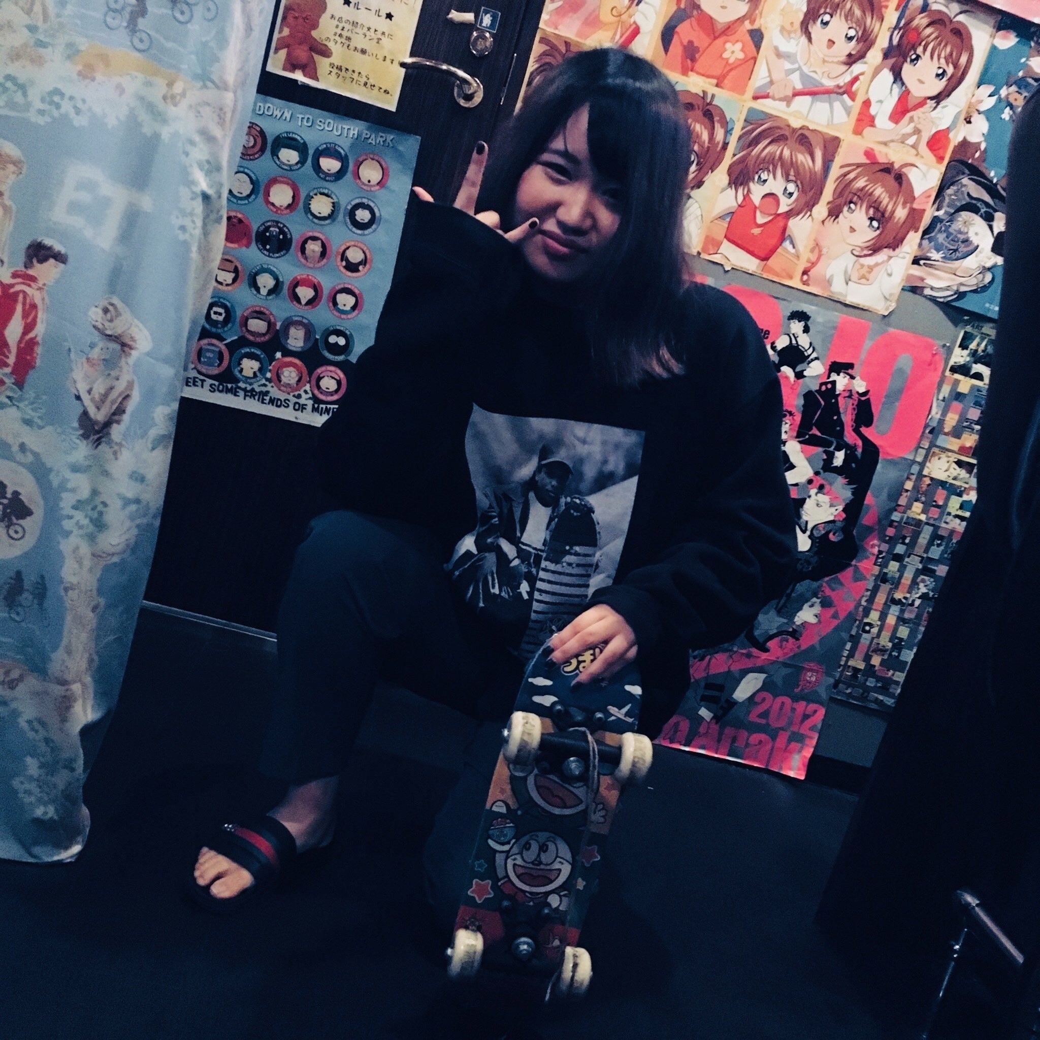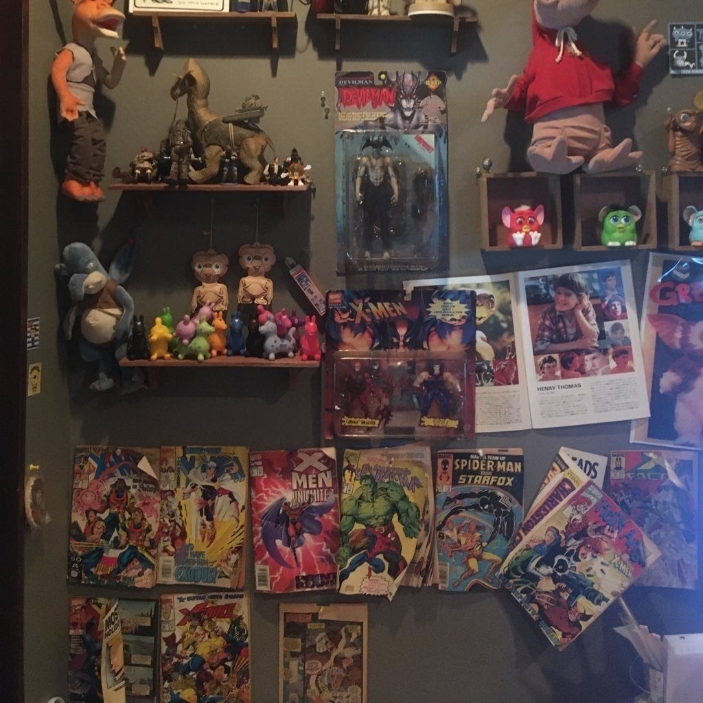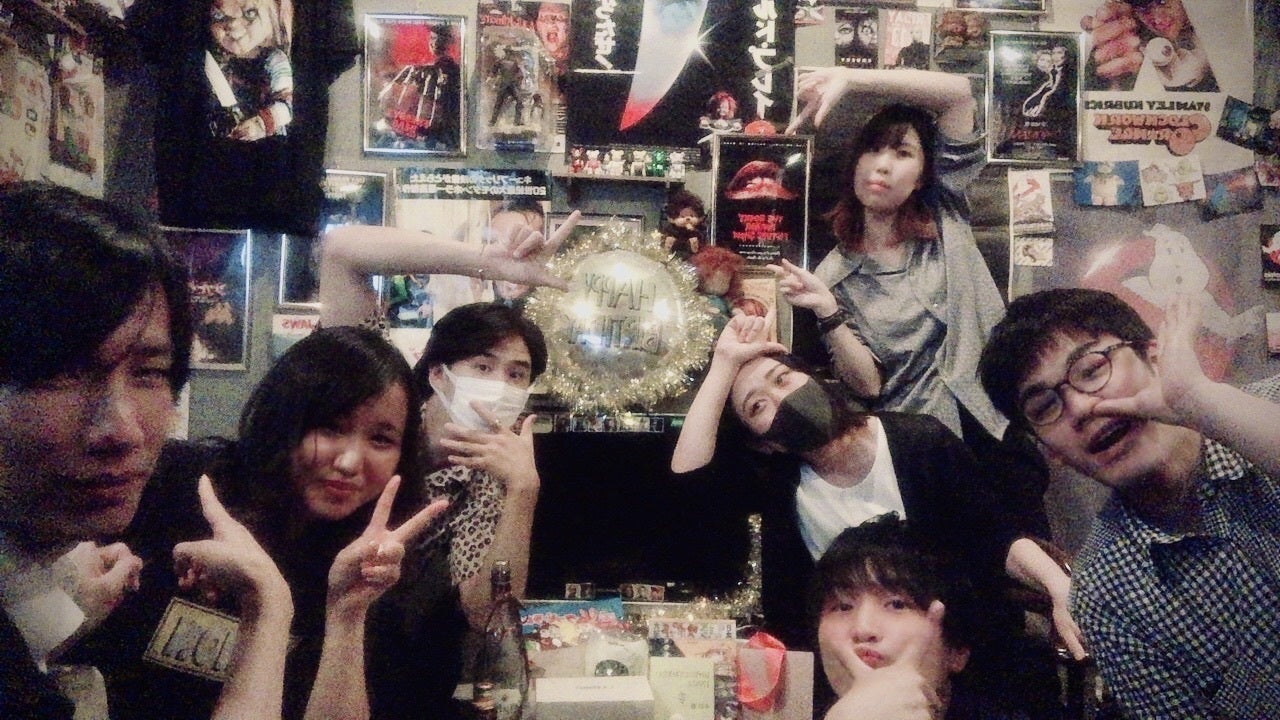 店内はホラー映画のポスターやアメトイのグッズで囲まれています。