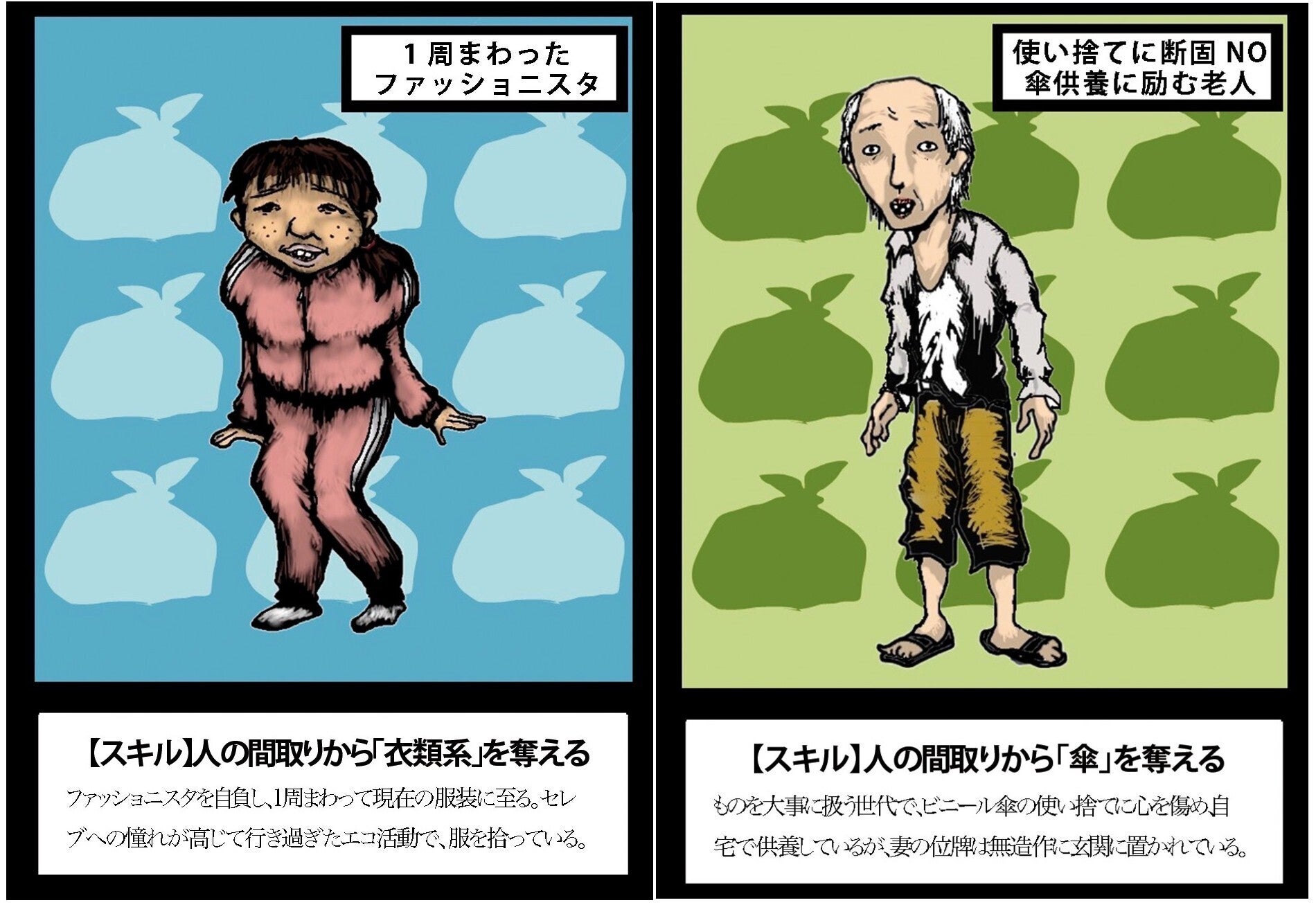 キャラクターカードのサンプル。あなたもごみ屋敷の住人になれる!