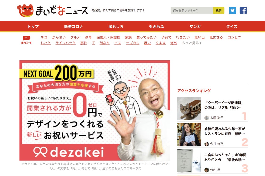 今回は「まいどなニュース」に掲載されました!!!