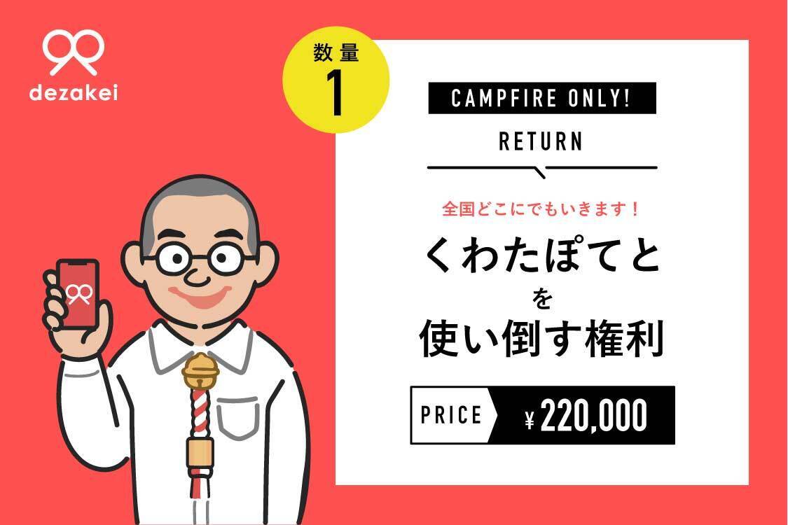 しかし、「くわたぽてとを1日、自由に使い倒せる権利」は、1個しかリターンとしては出していなかったのですが、今回このリターンに追加しました!