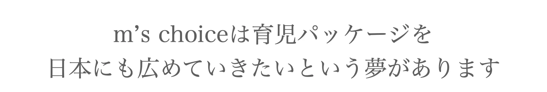 m’s choiceは、きょうくるみを原点として、育児ボックスの実現に向けて日々努力し、育児問題の解決に少しでも貢献していきたいと考えています。また、育児問題に多くの方が目を向け、手を差し伸べてくれるような社会になることを願っています。
