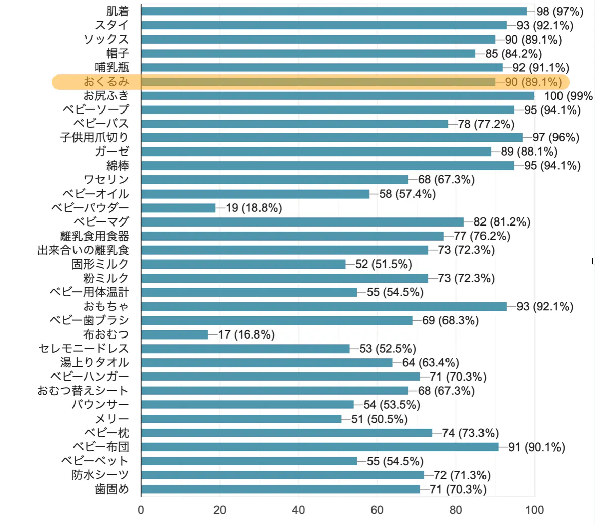 この結果より、約8割の方がおくるみ(上から6個目)を使用していることが分かりました。