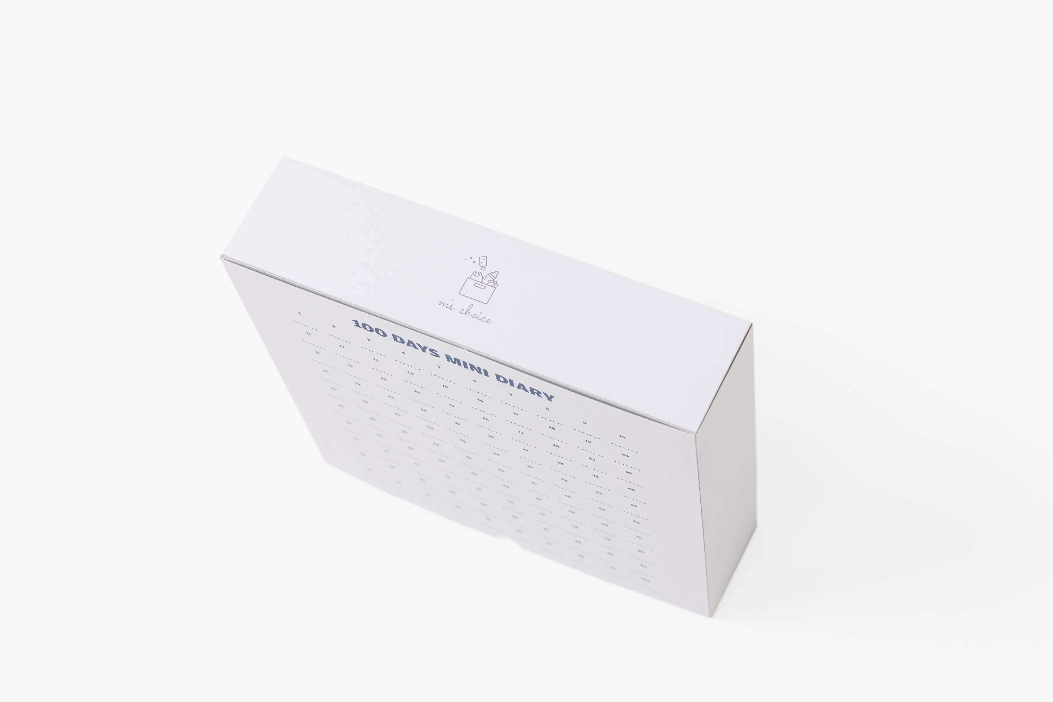 パッケージは、環境に配慮し、ゴミとして捨てるのではなく、購入者に活用していただける仕様になっております。パッケージの裏面は、“100DAYS MINI DAIARY” として、100日間の簡単な日記になっておりますので、お食い初めまでのカウントダウンや、日々の成長を簡単に記録することができます。