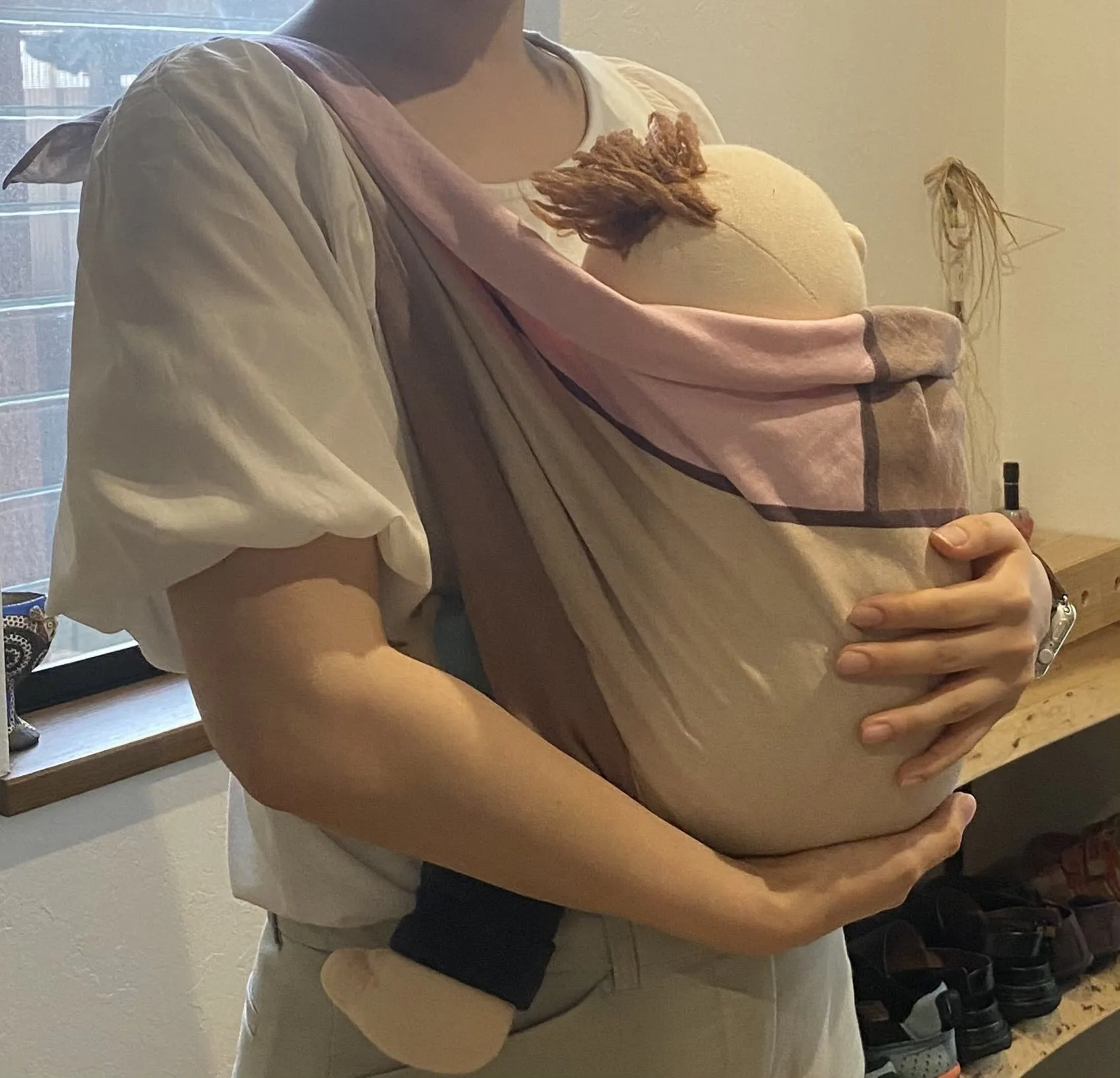 ※あくまで補助としての役割になりますので、使用する際は赤ちゃんの股と使用者のお腹の間に布をしっかりと挟み込みしっかりと赤ちゃんを抱っこしてください