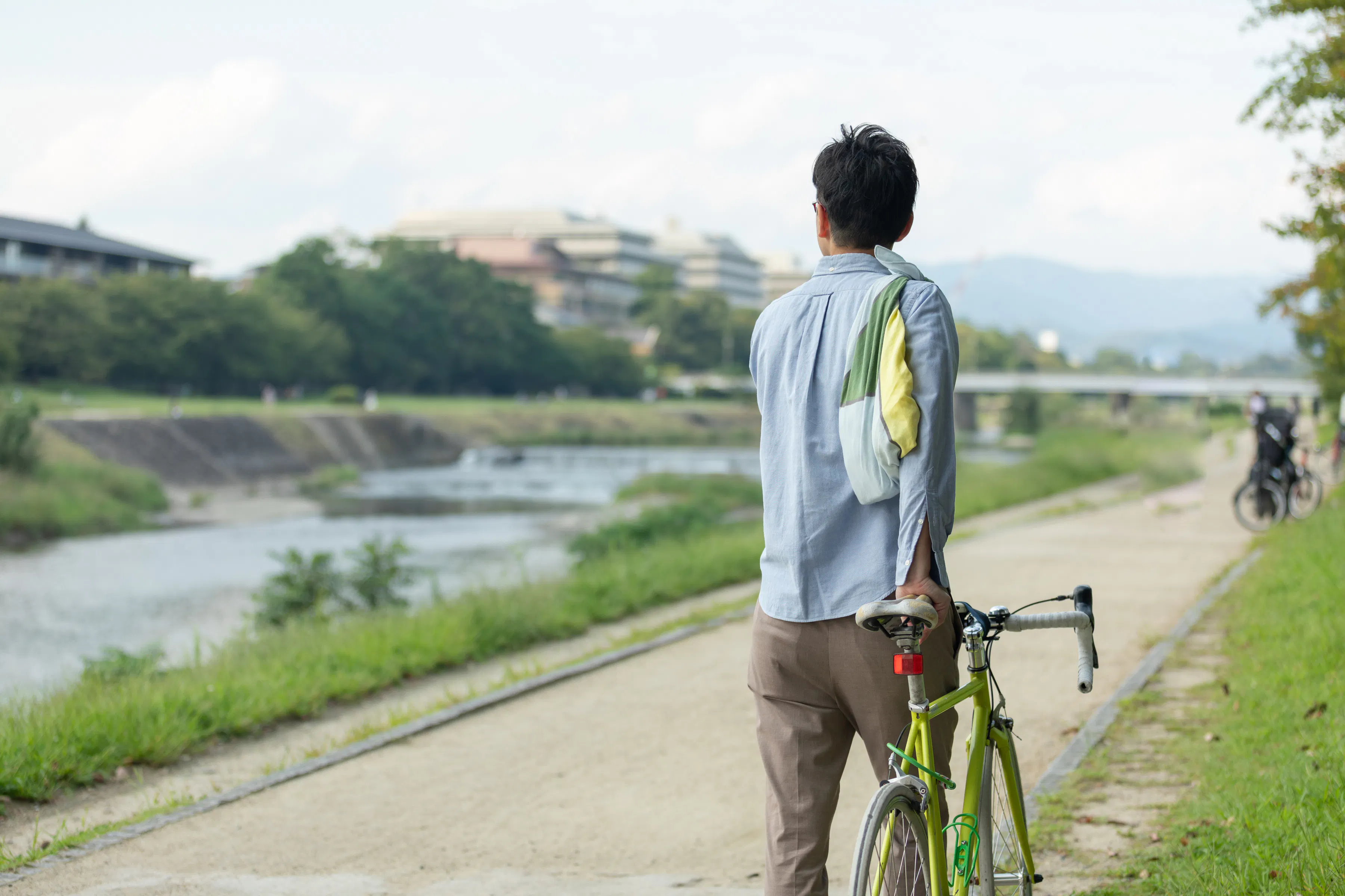 男性にもおすすめです。お買い物に行く際や自転車に乗る際、一枚あれば手提げバックや斜めがけバックに大変身!速乾性があるため、汗をかいても大丈夫!また、普通のバックと違い、すぐに洗えて乾きやすいところも魅力です。