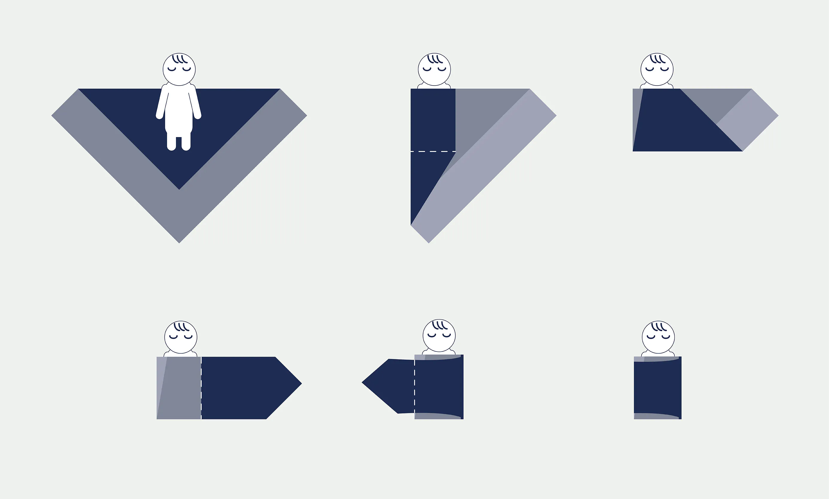 ★ママパパ達の意見で、”おくるみの巻き方がわからない”という意見が多数ございました。今回、おくるみを巻く時の補助的な線をデザインしたものがこちらになります。こちらの線は、基本巻きの補助的な線になります。