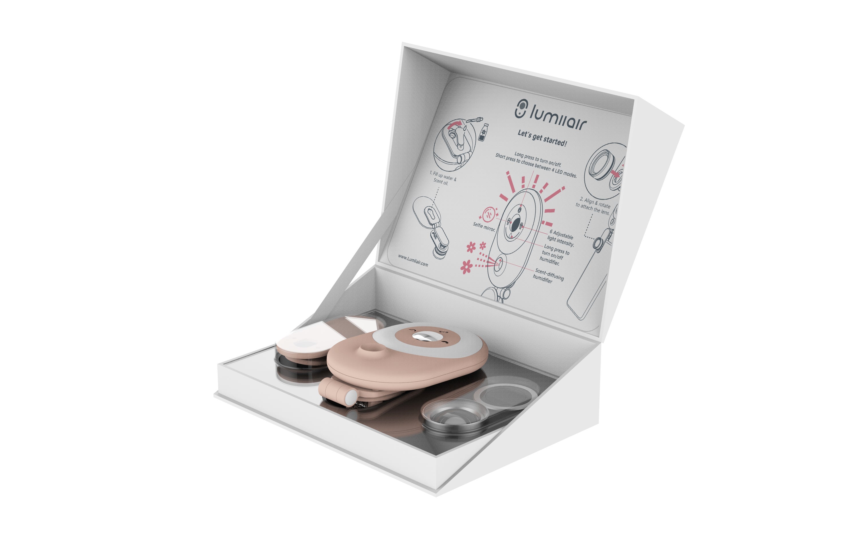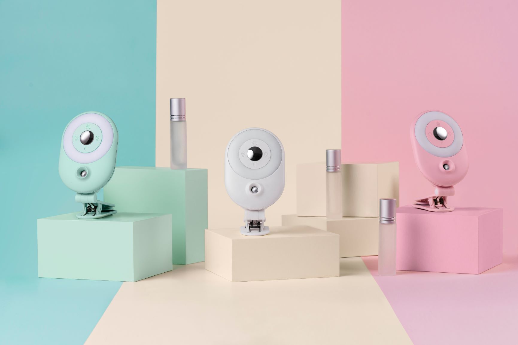 LumiiAirの特別なデザインは、セルフクリップをサポートベースとして使用して、保湿スプレーをフレグランススプレーに変えることができます 。