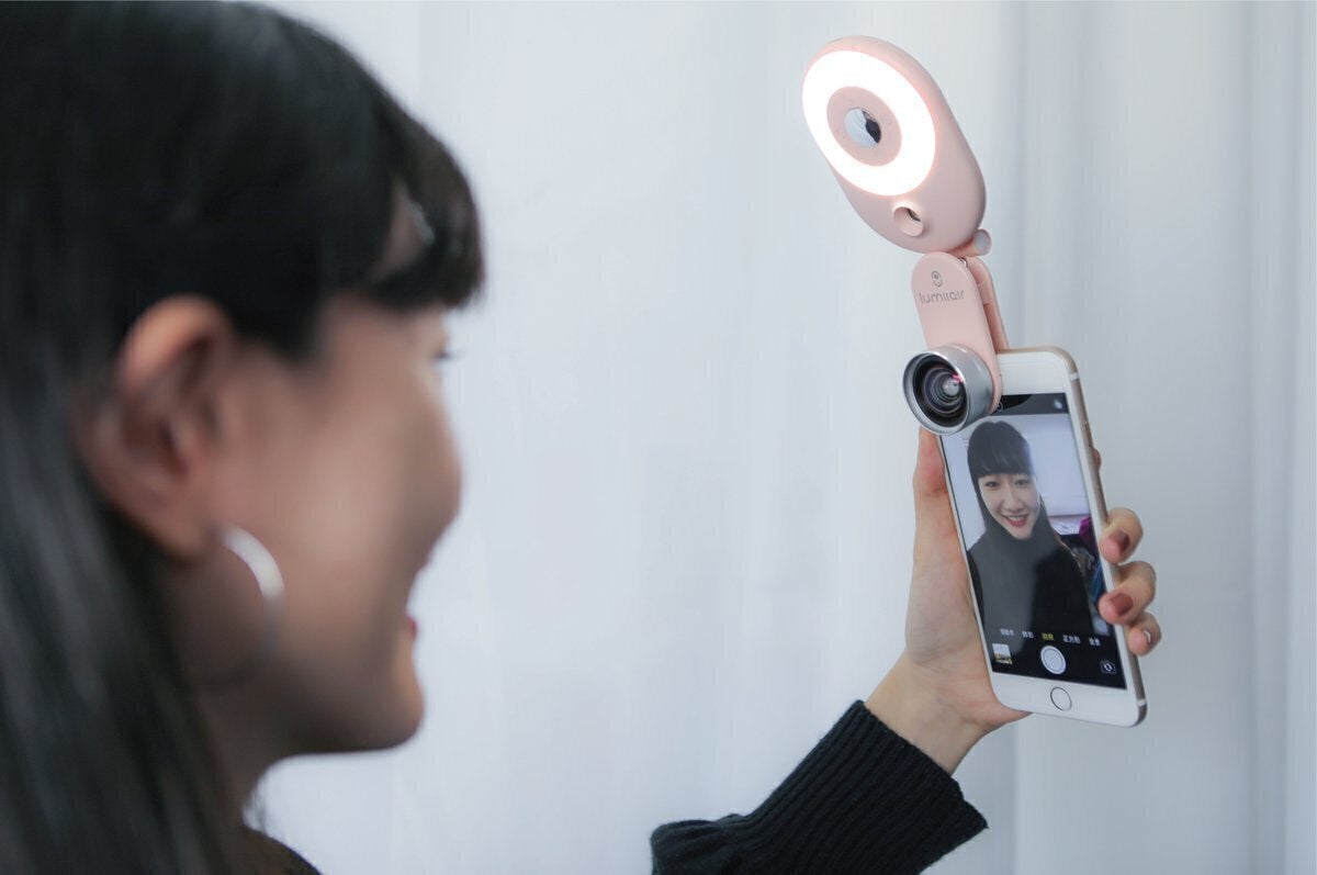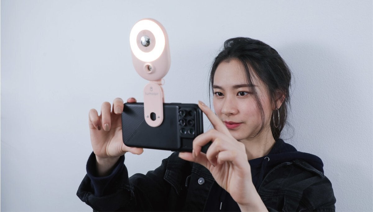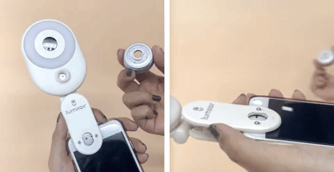 LumiiAirをリアレンズにクリップすることができ、補助レンズを通して自分撮りをして、音量ボタンまたはカメラボタンを押すことができます!