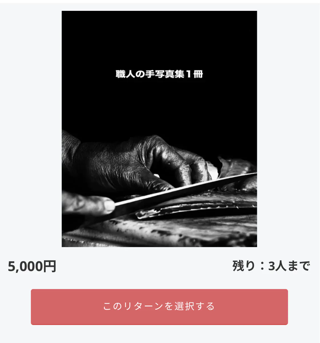 この度、日々応援頂けている方からリターン追加のご提案を頂き急遽、5000円枠で職人の手の写真集を追加させていただきました。