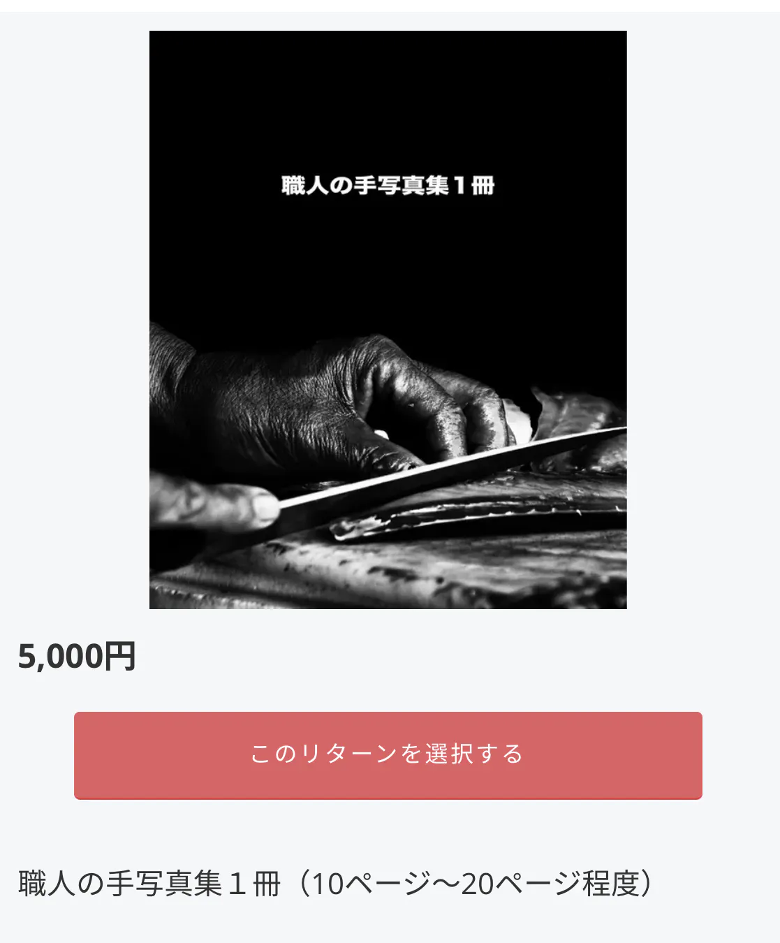 尚、今回リターンとして追加させて頂く写真集の完成品におきましては、枠数が埋まってしまった写真集のリターンと同様のものを考えております。