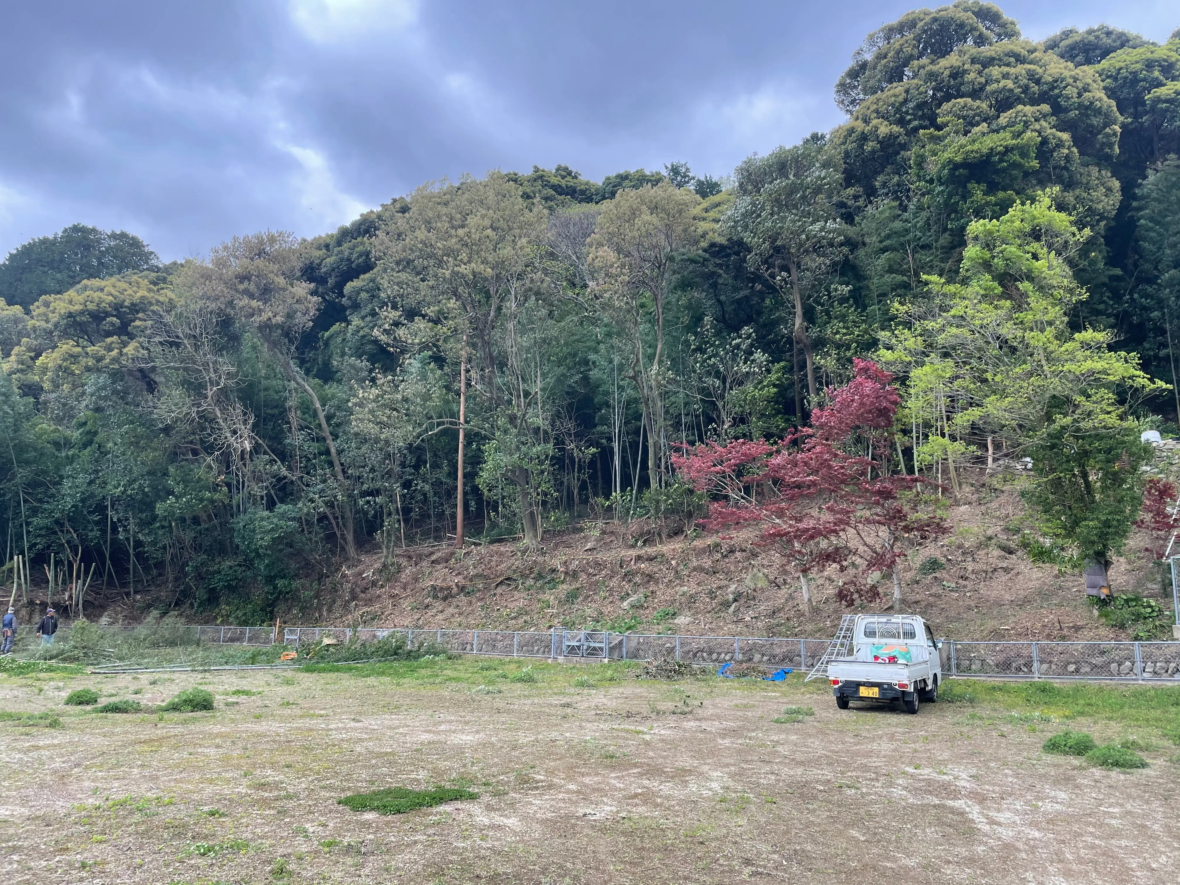 そこにある大木や竹などを伐採しなければ、グラウンドの周りにネットを貼ることができません。