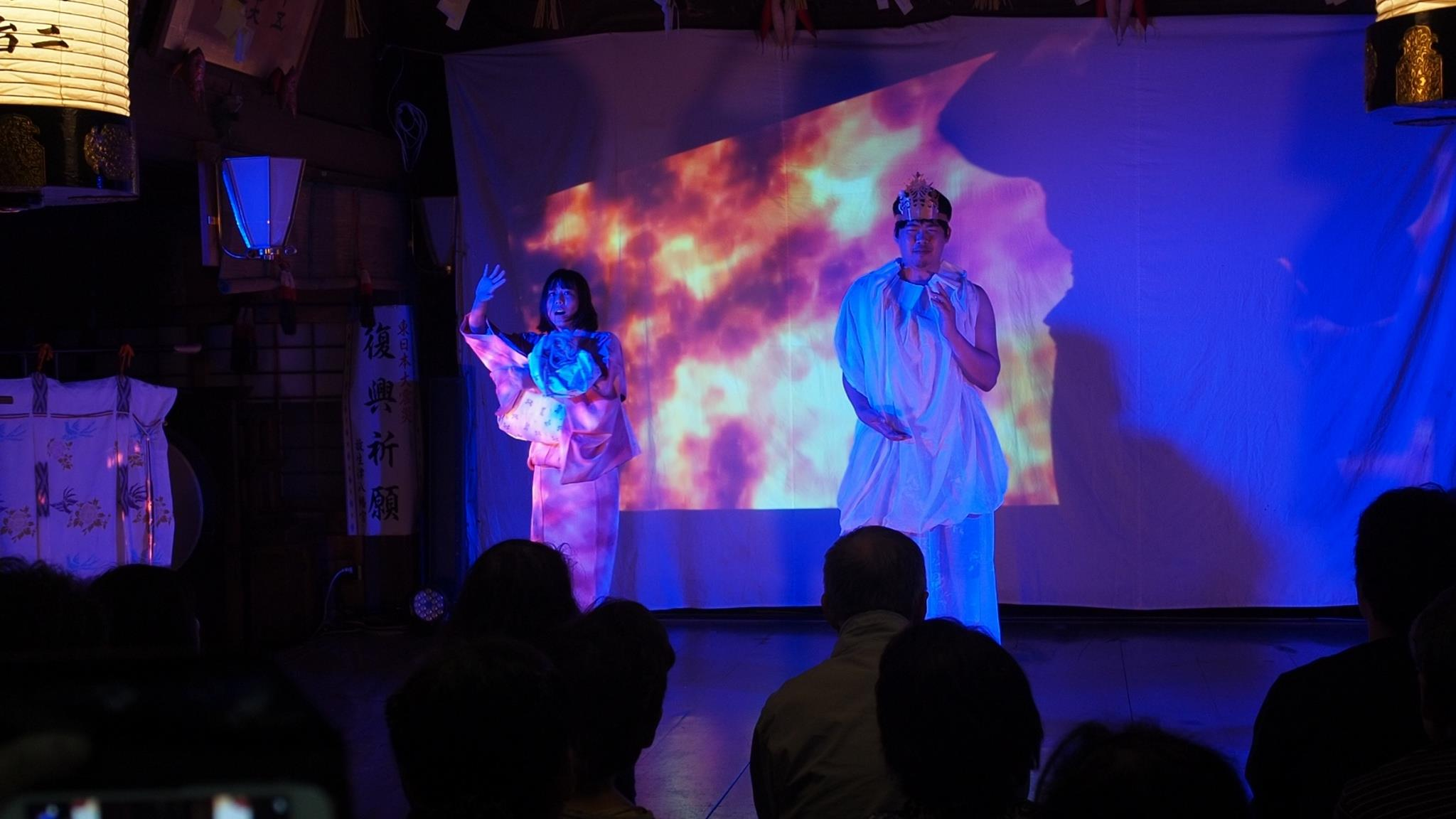 神社の本殿を舞台に民話演劇