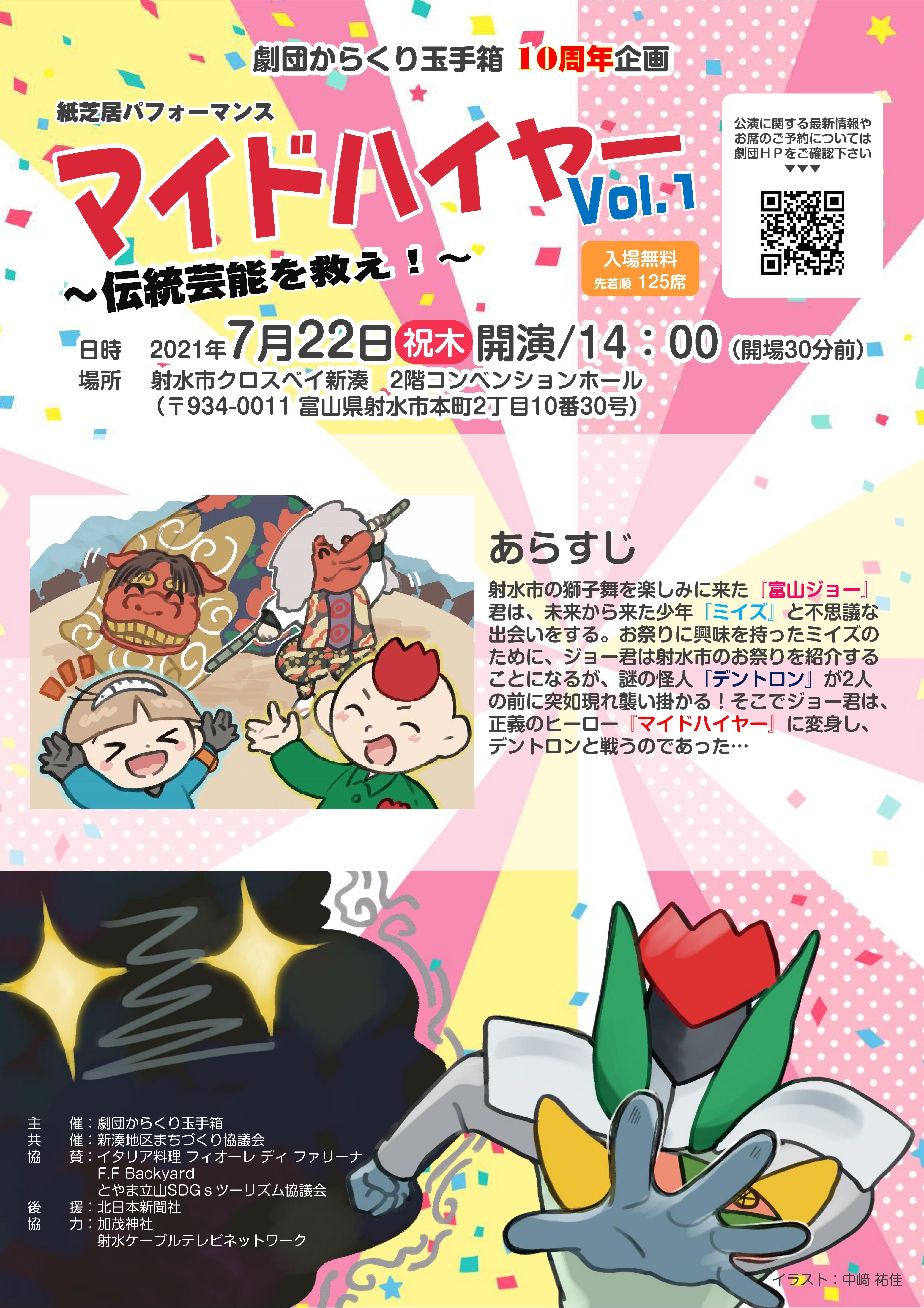 今回は射水市の伝統芸能をテーマとさせていただきましたが、今後もいろんなオリジナル紙芝居をつくり、富山県内を演劇で盛り上げていきたいです!