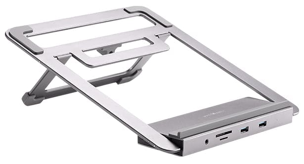 この【ドッキングスタンド】は13個のコネクタを搭載したアルミ合金のPCスタンド。