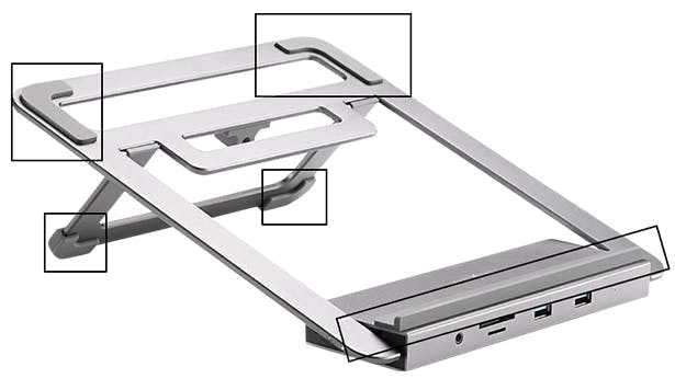 またシリコンの滑り止めが付いているので、ツルツルのテーブルでもノートパソコンをしっかり固定してくれます。