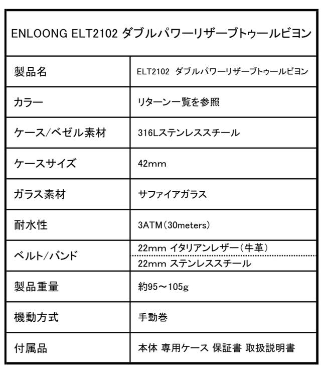 今回ご紹介させていただくモデルは【ENLOONG.ELT2102】トゥールビヨンウォッチ 選べる全8カラーです。