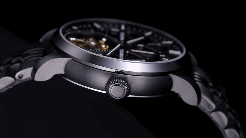 表裏スケルトンデザインに拘りを持ち、本製品のダブルパワーリザーブもはっきりと見えるようにデザインしています。 スケルトンデザインにすることで、機械式腕時計の醍醐味でもあるトゥールビヨンやダブルパワーリザーブといった内部の動きが確認できるように。