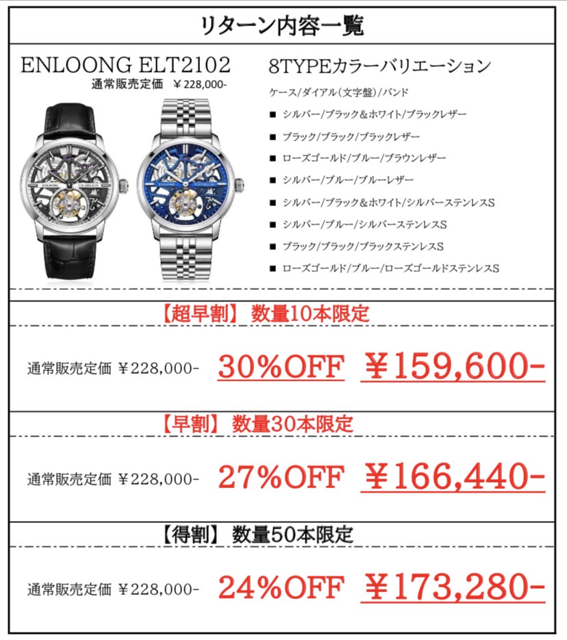 前回プロジェクトでご好評いただいた【ENLOONG】トゥールビヨン腕時計プロジェクト。再度、正規代理店として最新モデルをご紹介させていただきます。