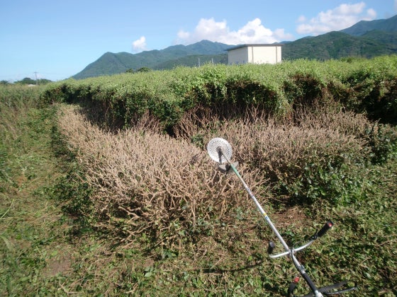 東串良町の茶園の端を無償で整備していただきました。機械が入れるように茶樹を2.5m幅、抜きました。