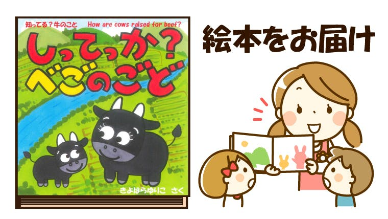 絵本は、『しってっか?べごのごど(知ってる?牛のこと)』というタイトルで、私の故郷である福島弁、標準語、英語の3か国語で読んでいただけるようにしています。お子様から大人まで、世代も国境も越えて、出来るだけ多くの人に絵本を届けることで、「もったいない」精神が自然に芽生え、食品ロスやアニマルウェルフェア(家畜福祉)を身近に感じてもらうきっかけづくりにしたいと考えています。
