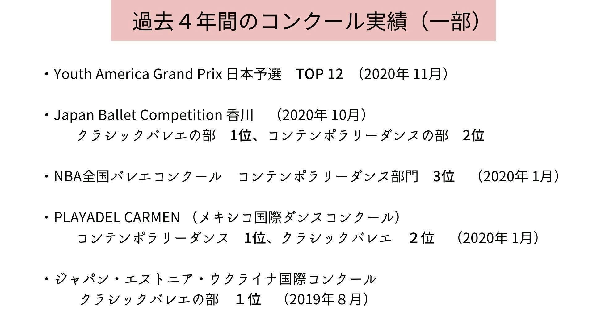 その歩みの中で、海外の有名バレエ学校へ留学生を送り出した他、振付、指導において国内外のバレエコンクールにおいて複数の上位入賞者を輩出いたしております。