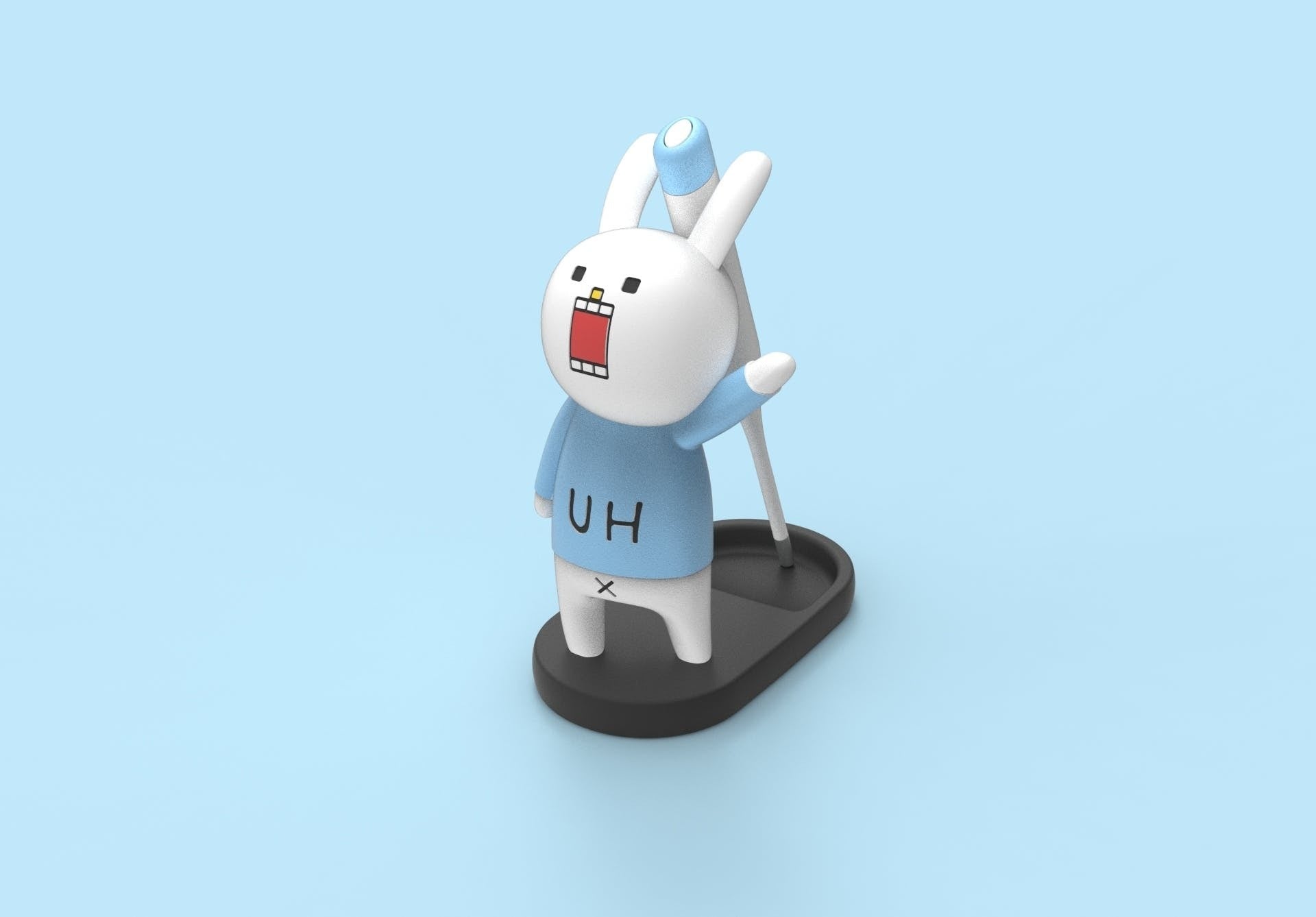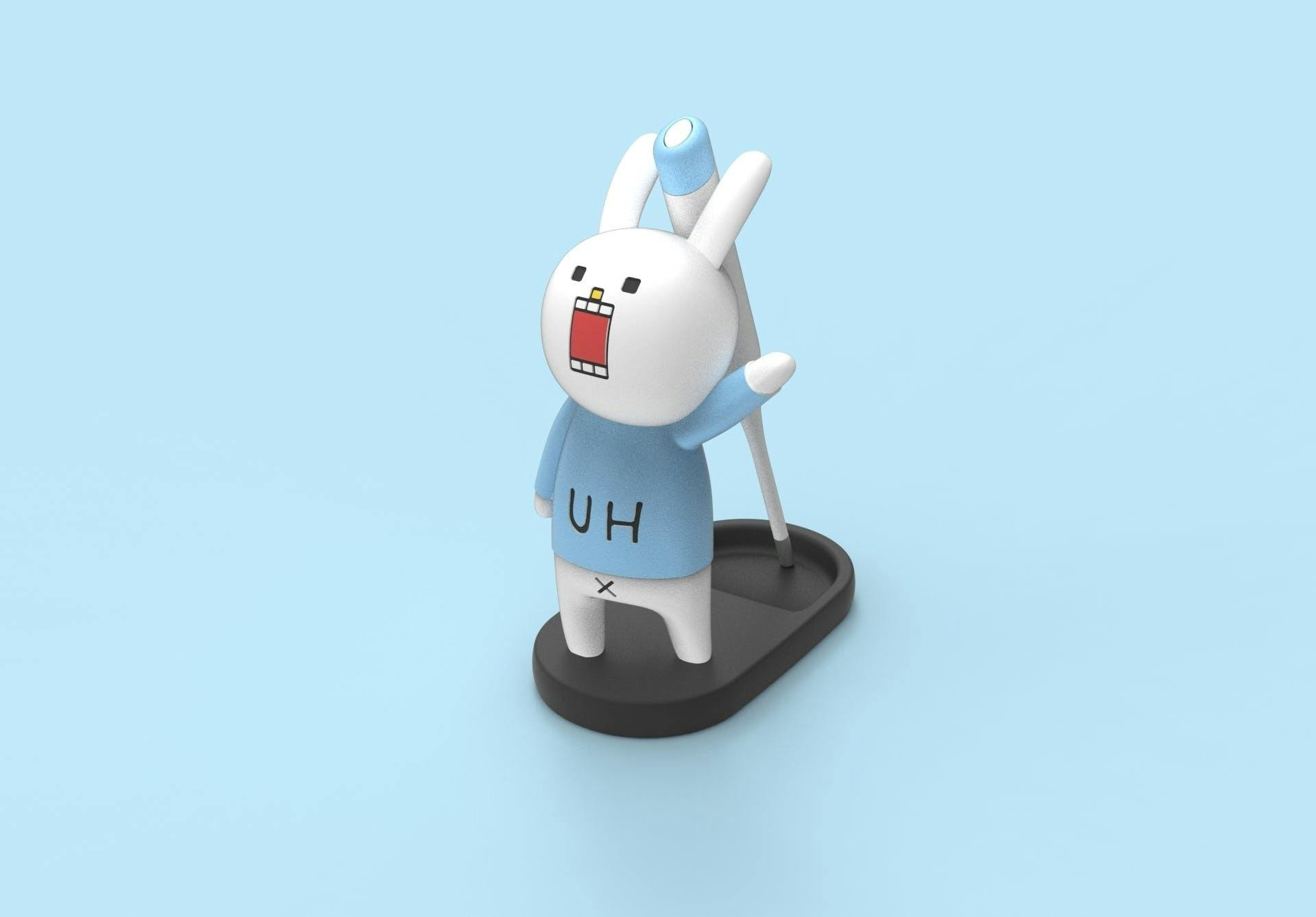 おうち時間が長引く中で、すこしでもみなさんの生活に楽しさを添えられたらと思い考案した、ウサギのウーの“使える”フィギュアです。