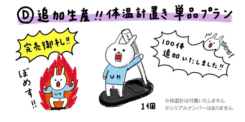 急遽、『ウサギのウーの体温計置き』(フィギュア)を100体追加発注することにいたしました。