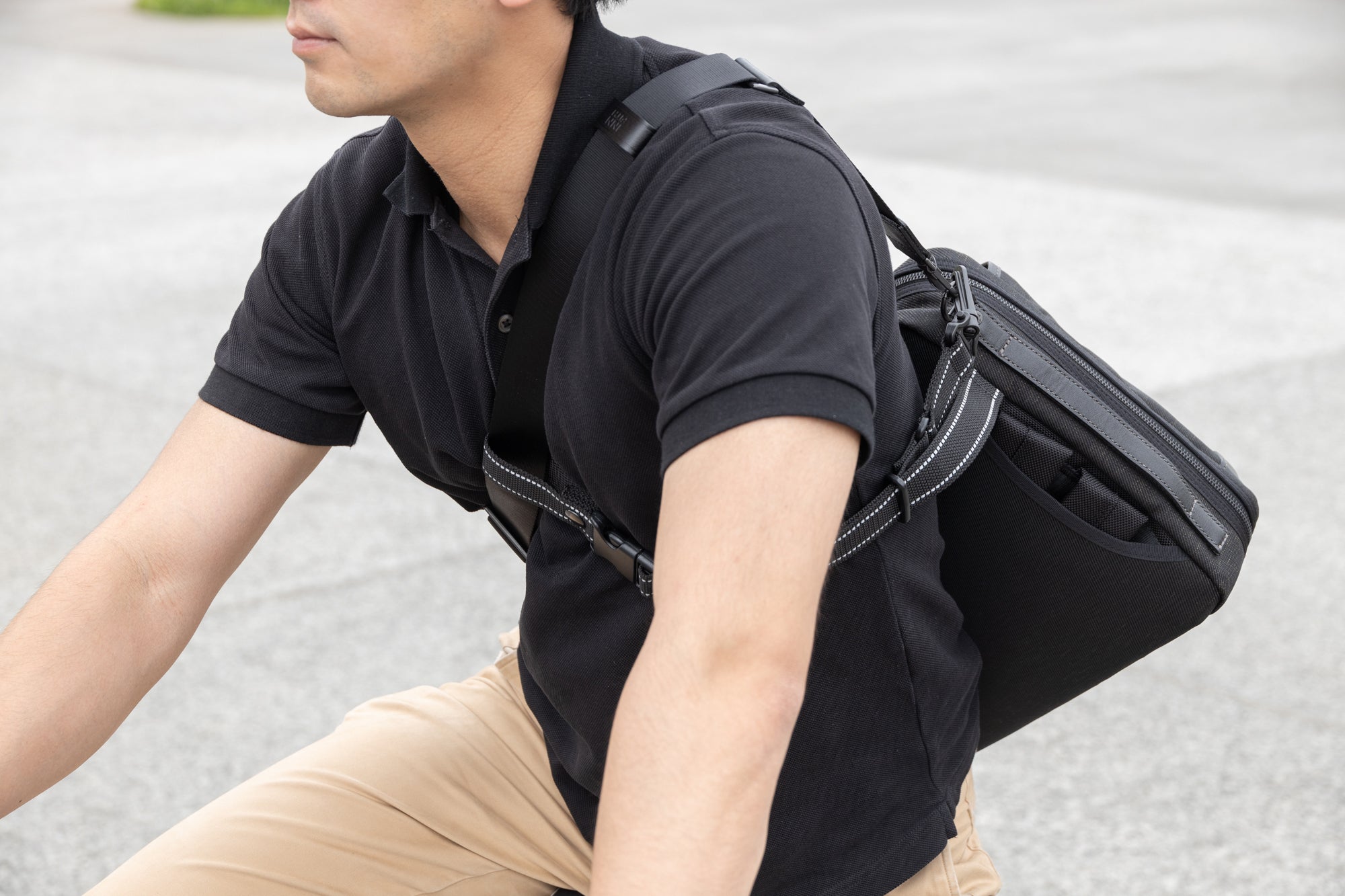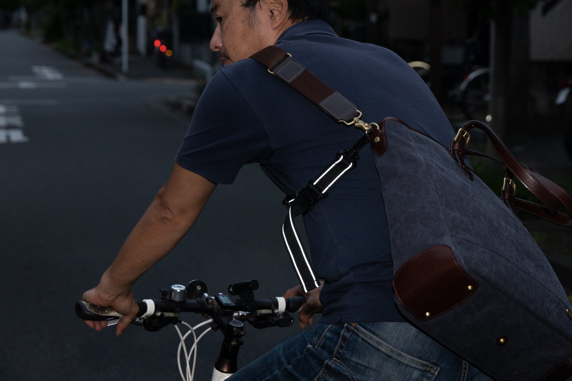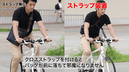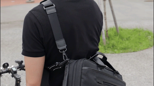自転車通勤の強い味方、これがあればビジネスバッグもズレずにメッセンジャーバッグのように背負って運ぶことができます!