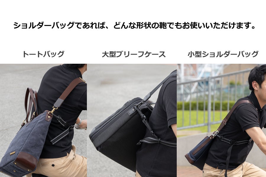 肩から斜め掛けにするタイプの鞄であれば、大型のブリーフケースから、小型のショルダーバッグまで幅広くお使いいただけます。