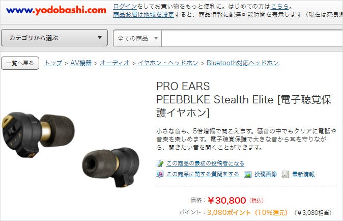 電子聴覚保護イヤホン「ProEars StealthElite」、ヨドバシカメラ主要7店舗で販売スタートしました。北海道から九州まで、以下の7店舗です。