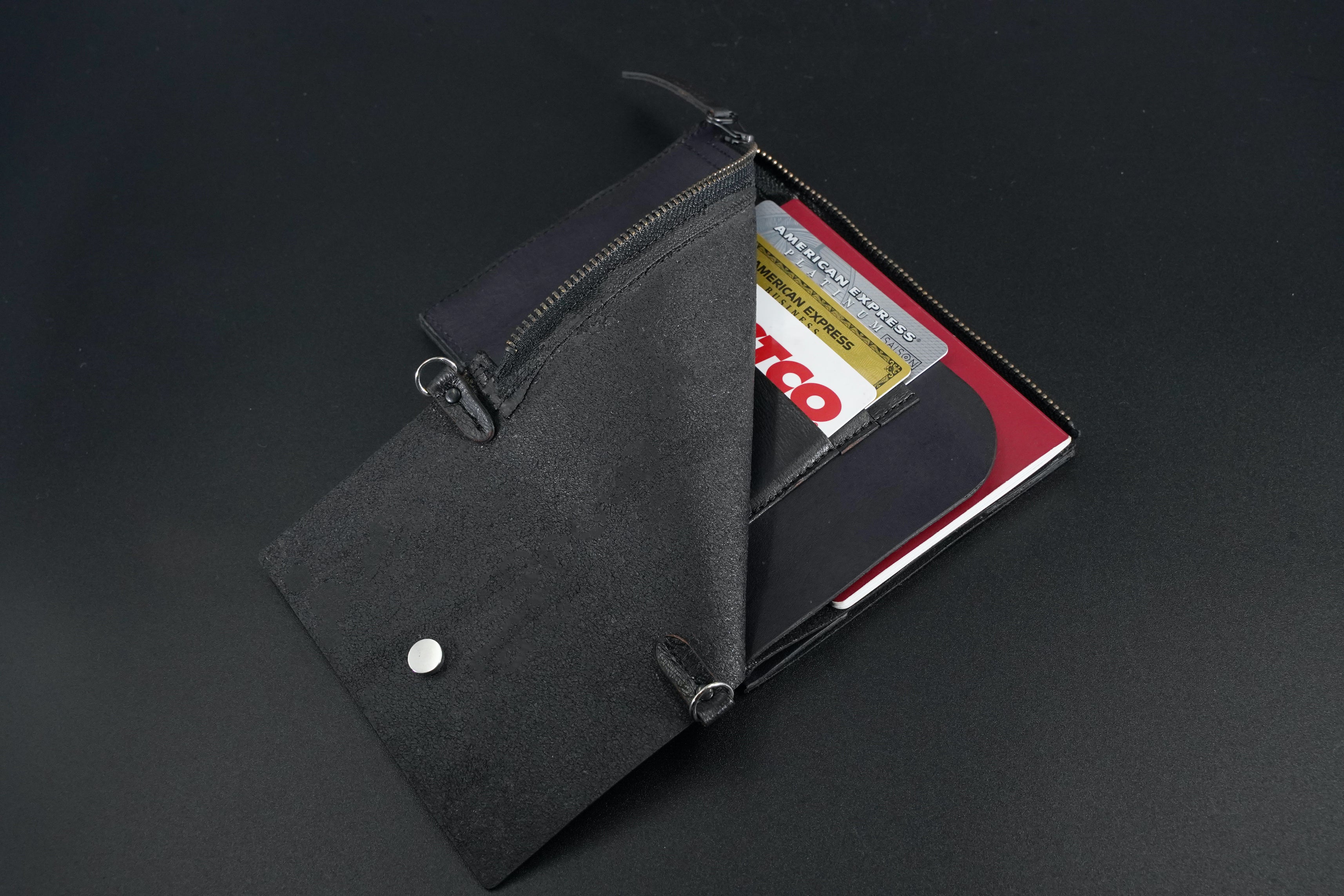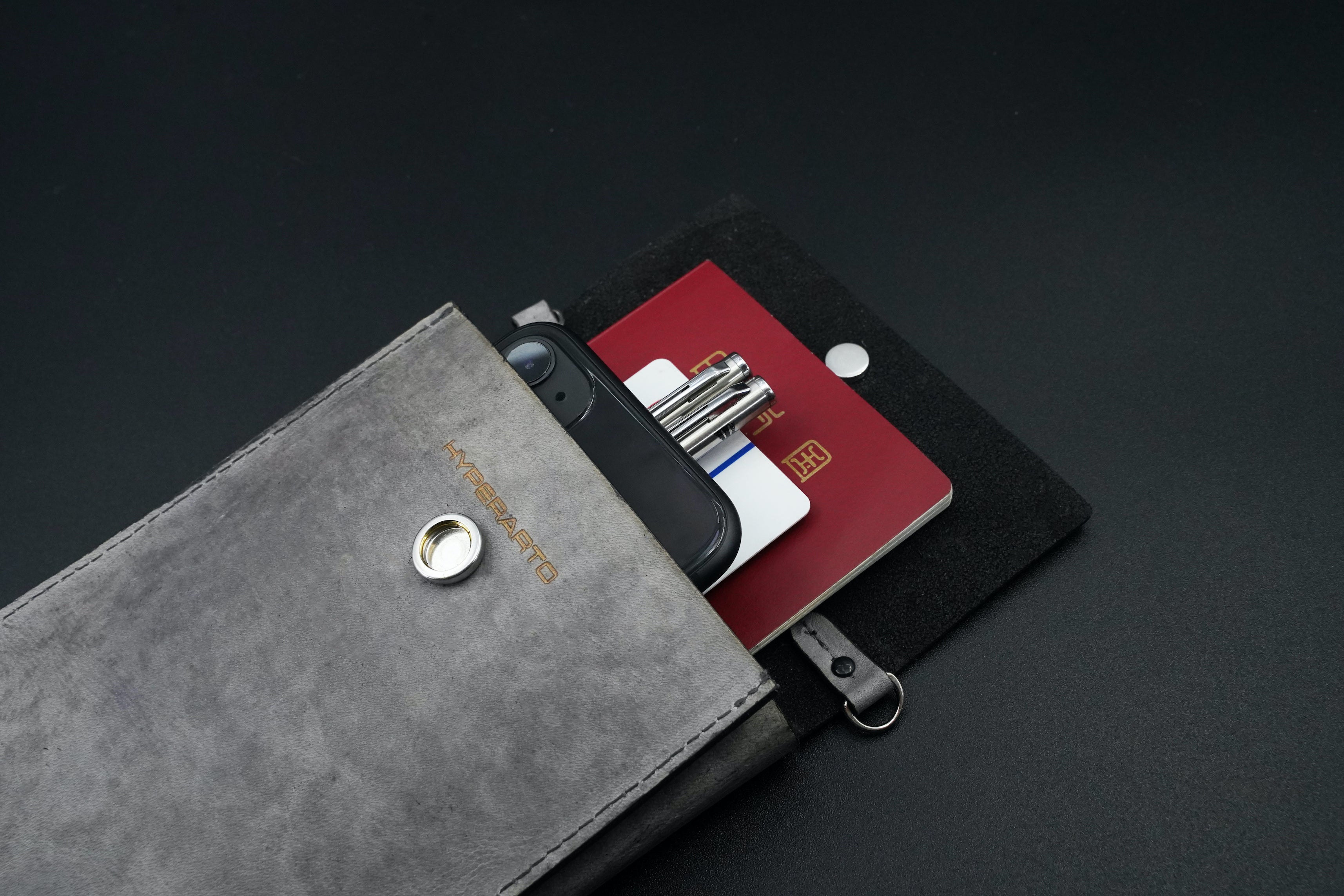 パスパートやカード、お札、スマホ、ボールペンなどが全て収まりますので