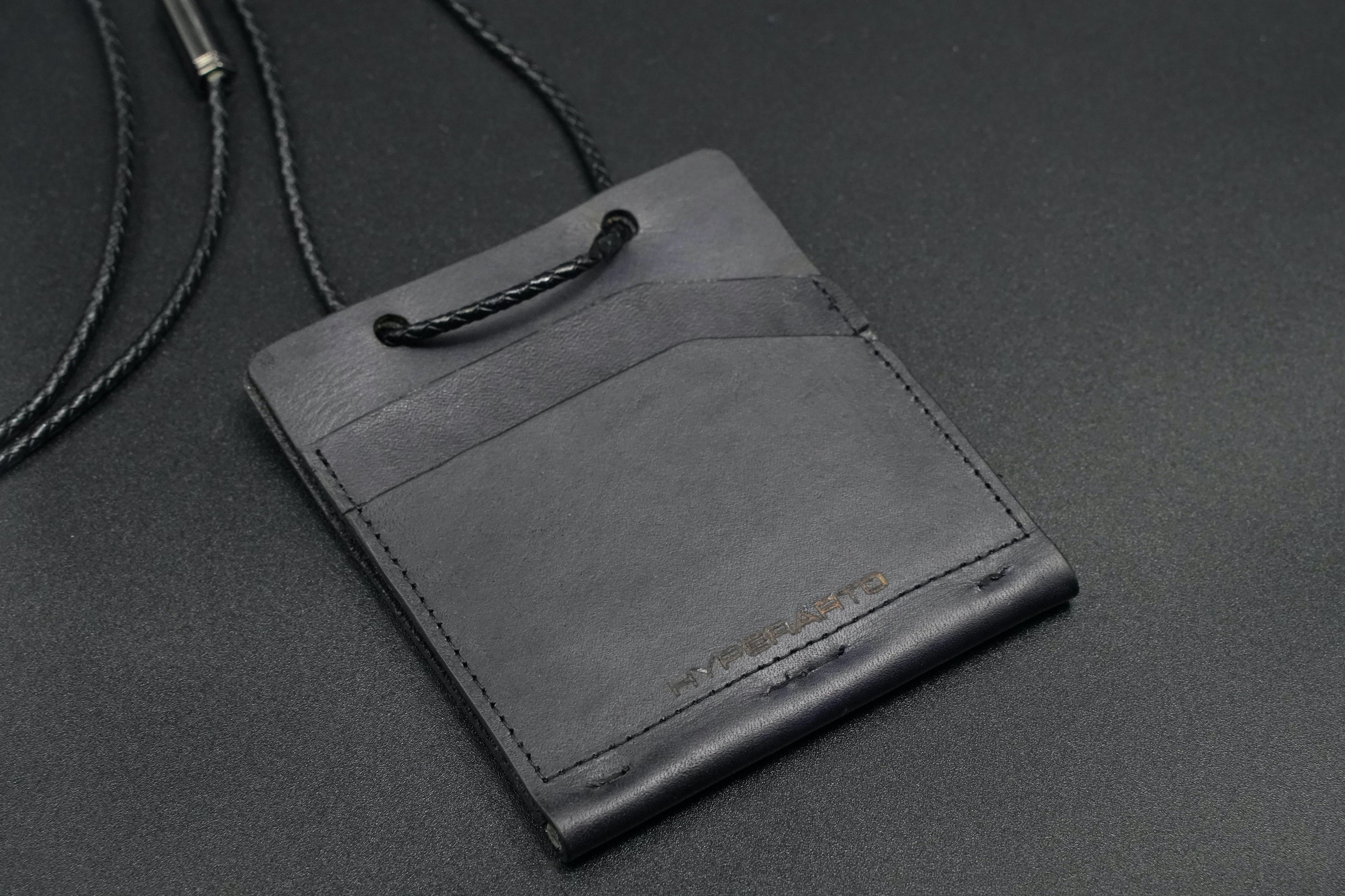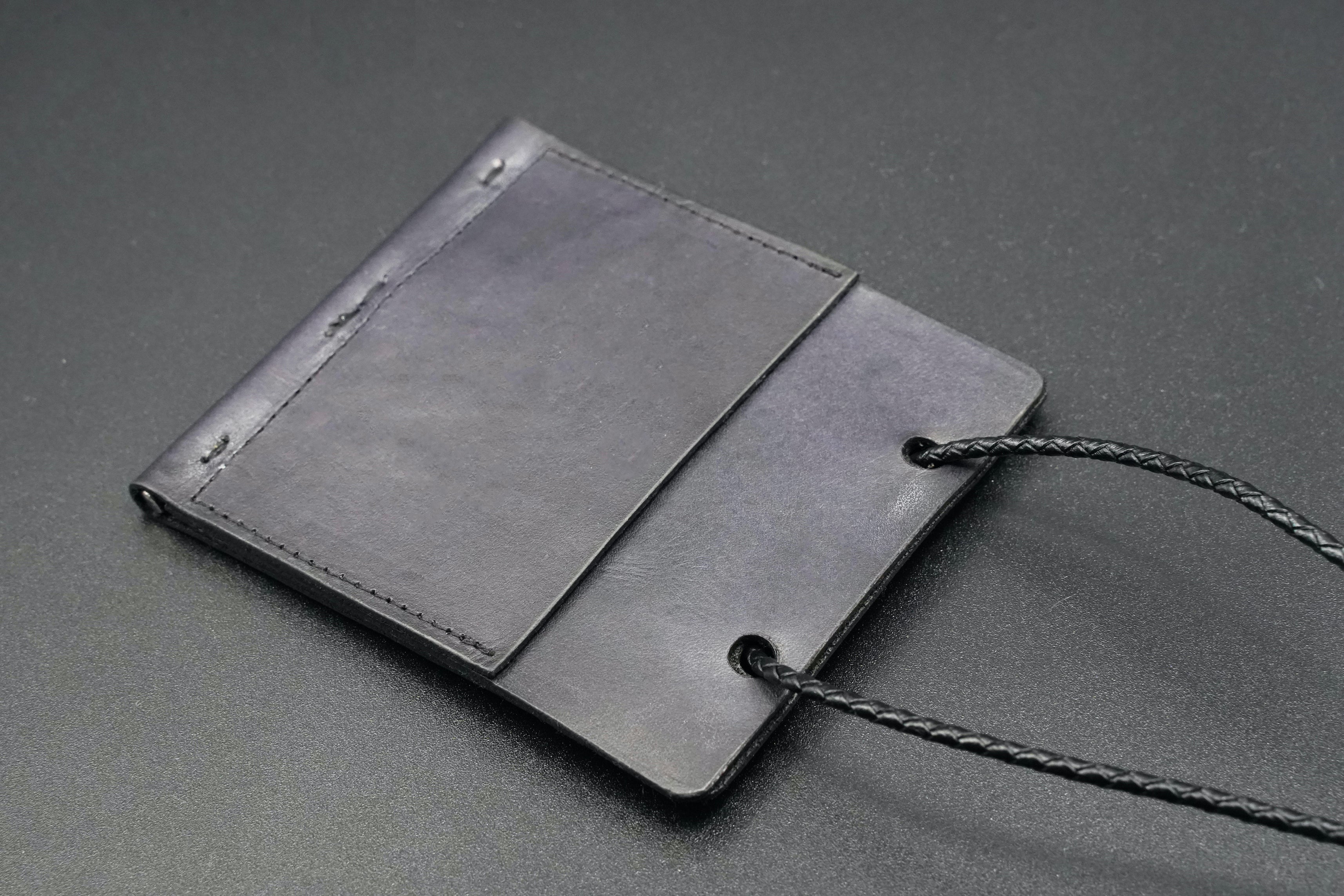 こちらも首からぶら下げる紐は本皮を編み込んだ仕様となっています。