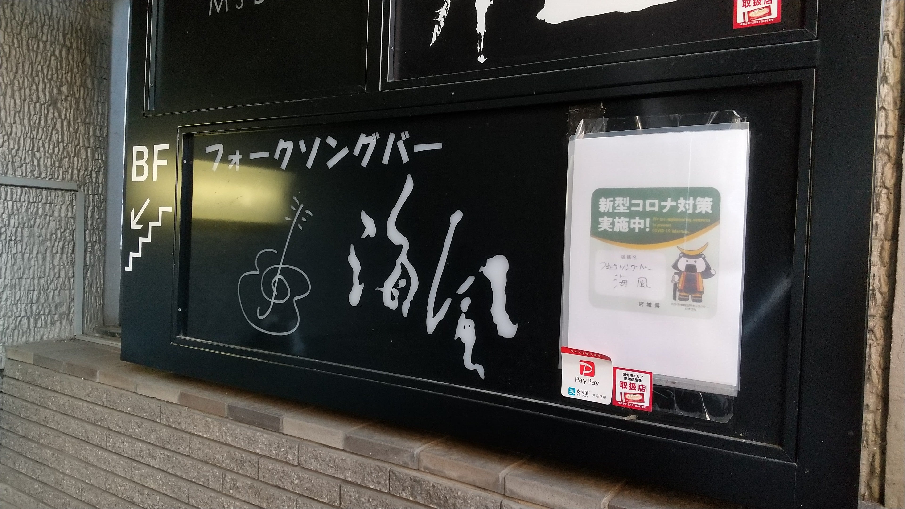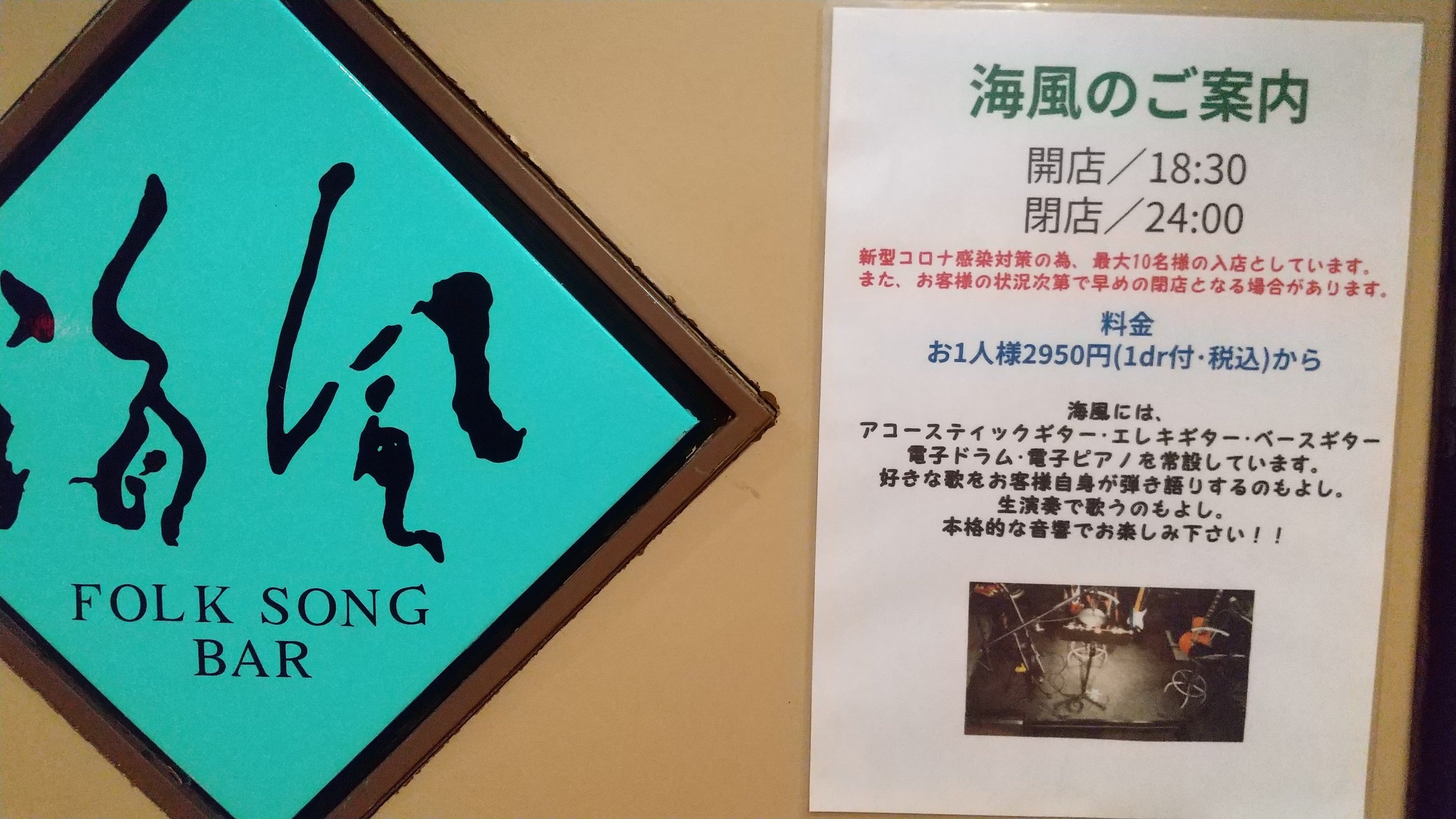 東北最大の夜の街「仙台市国分町」にある、アマチュアミュージシャンの為のライブバー「フォークソングバー海風」の店主BIN(廣海新吾)とsayuriです。