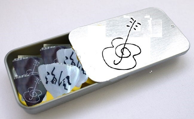 オリジナルピック缶ケース+ピック2枚(黒・白)付