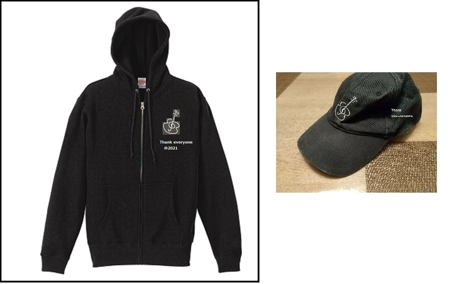 胸元に「マーク」の他に「Thank you,everyone@2021 」という文字を入れます。
