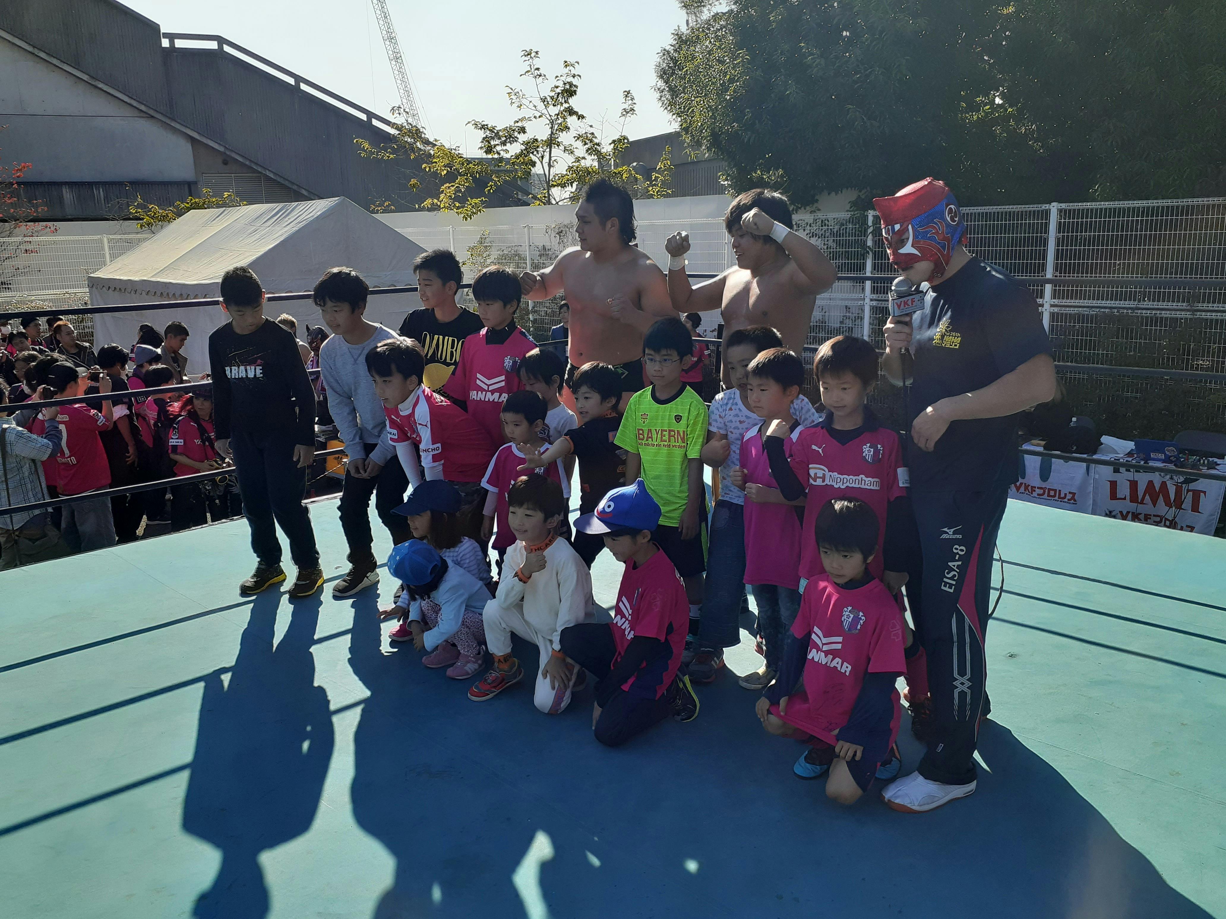 社会貢献の一環として幼稚園・福祉施設・高年齢施設などへ無料訪問しプロレスで勇気と元気をお届けしています。